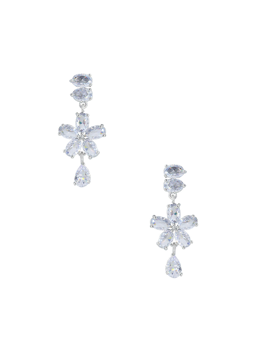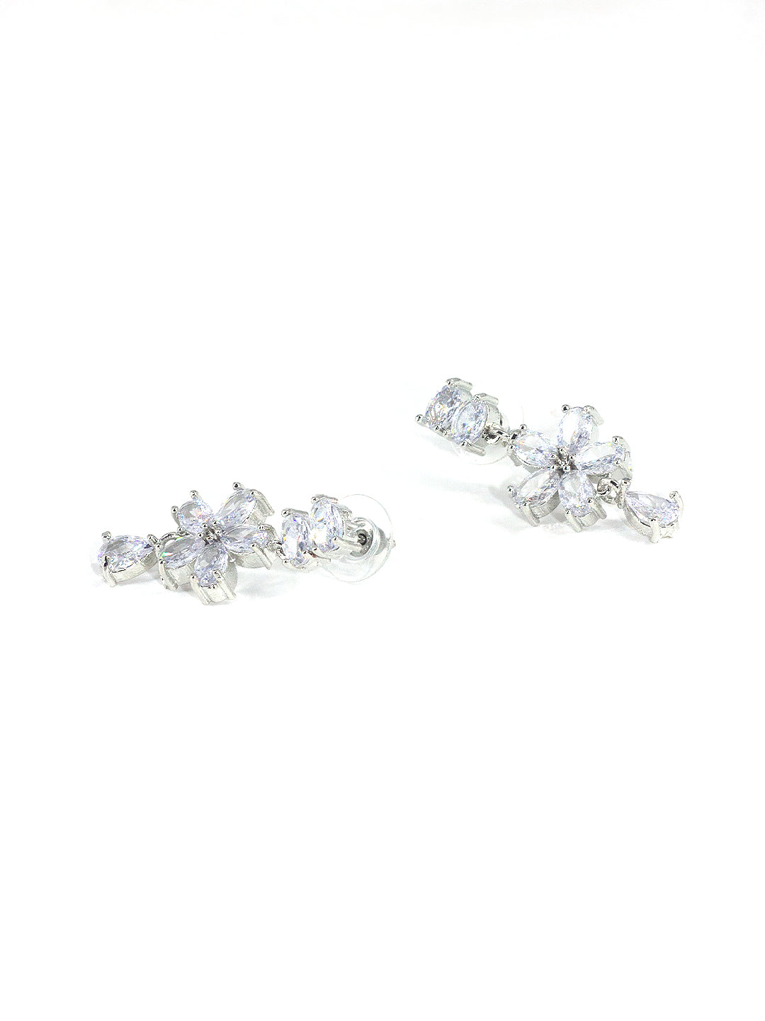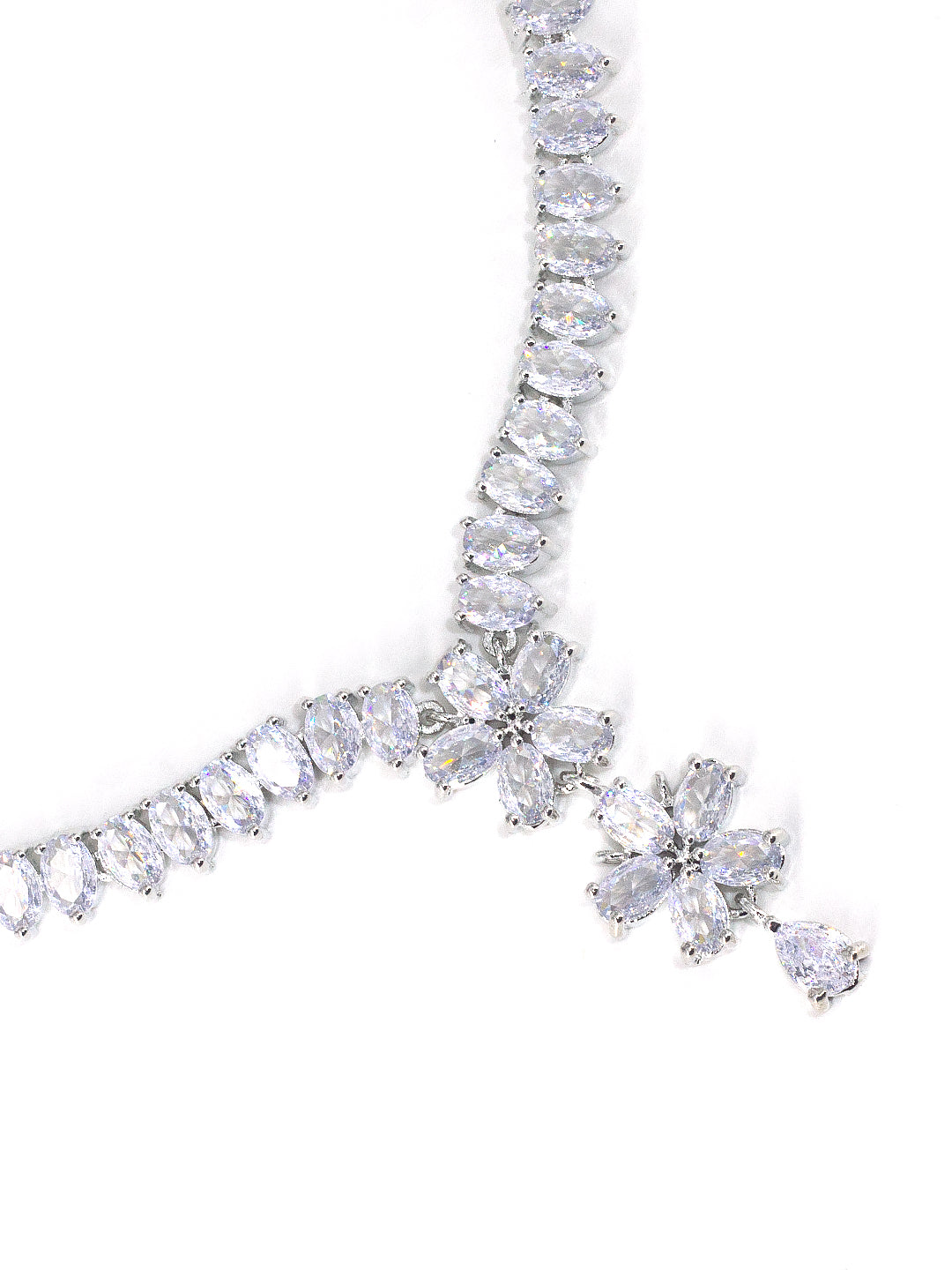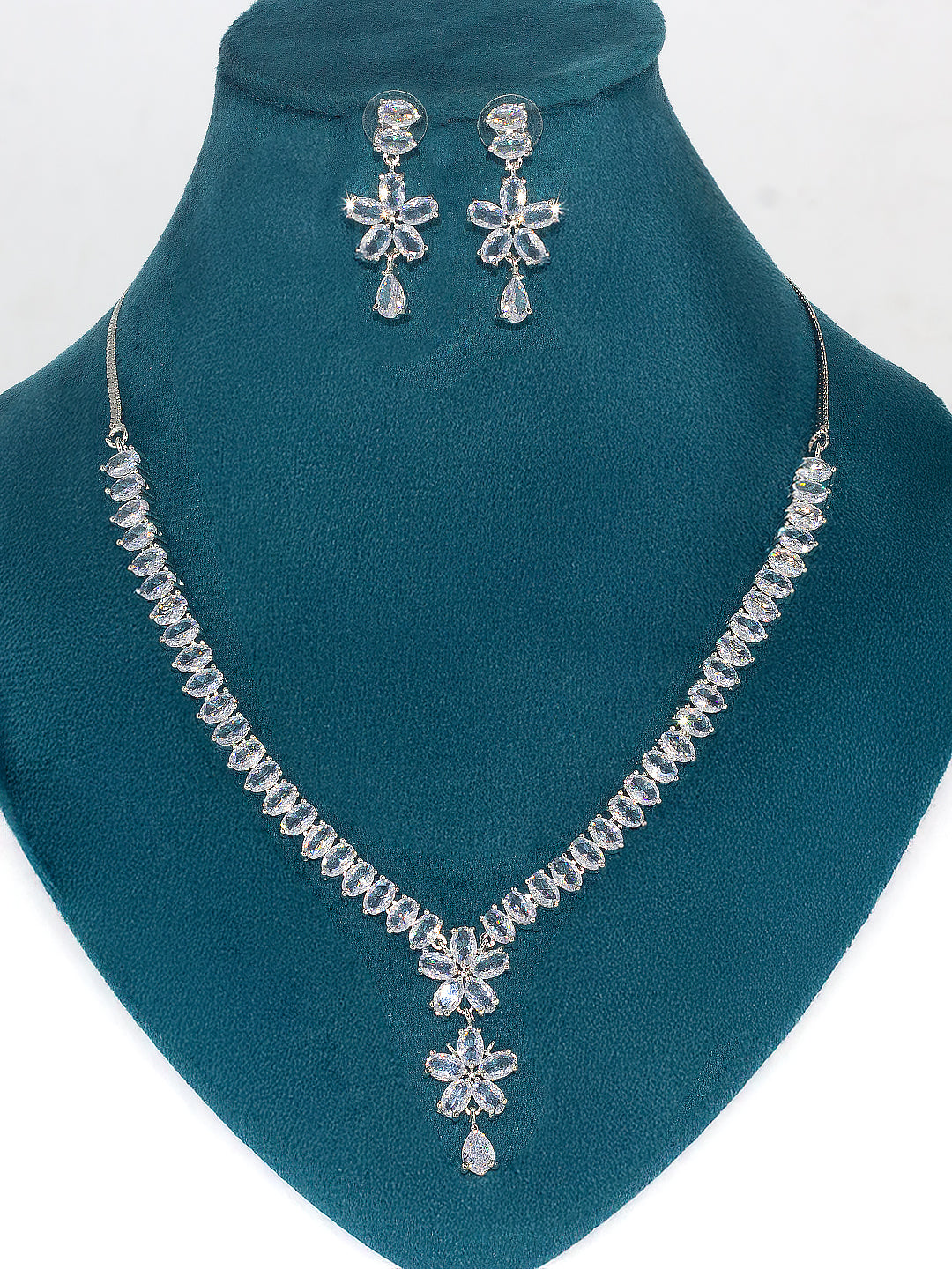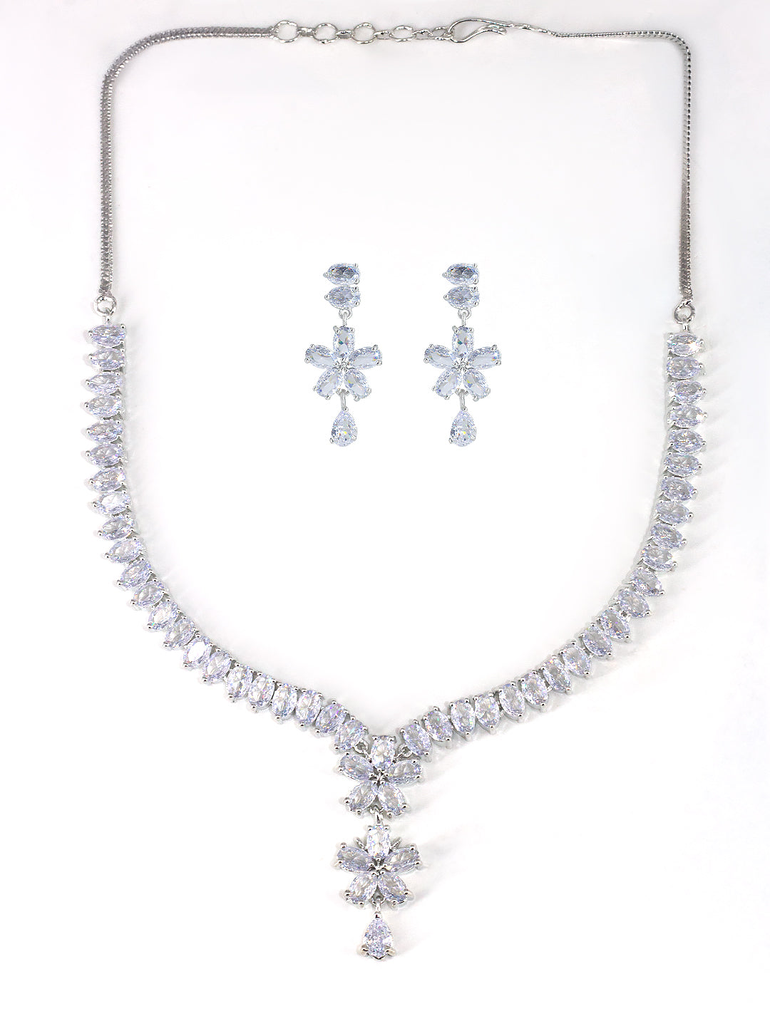 Rhodium Plated American Diamond Floral Drop Jewellery Set