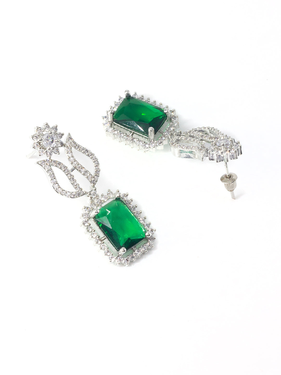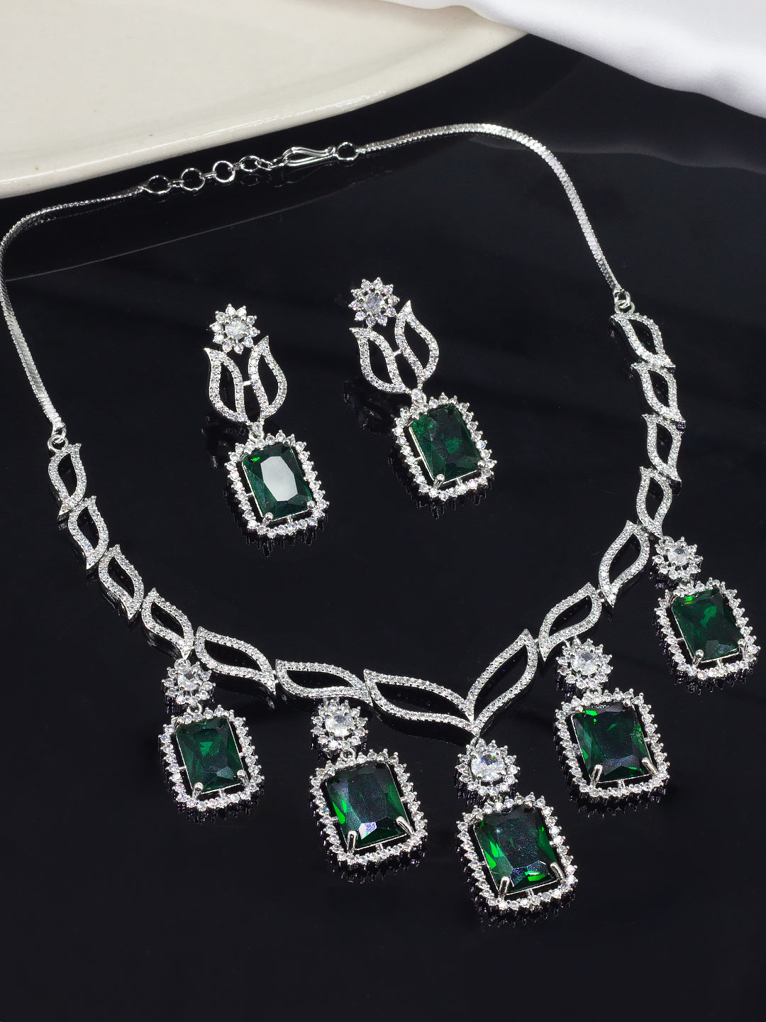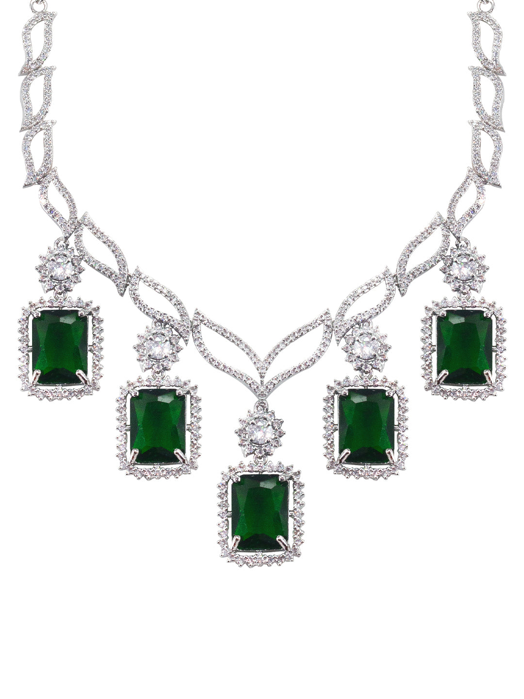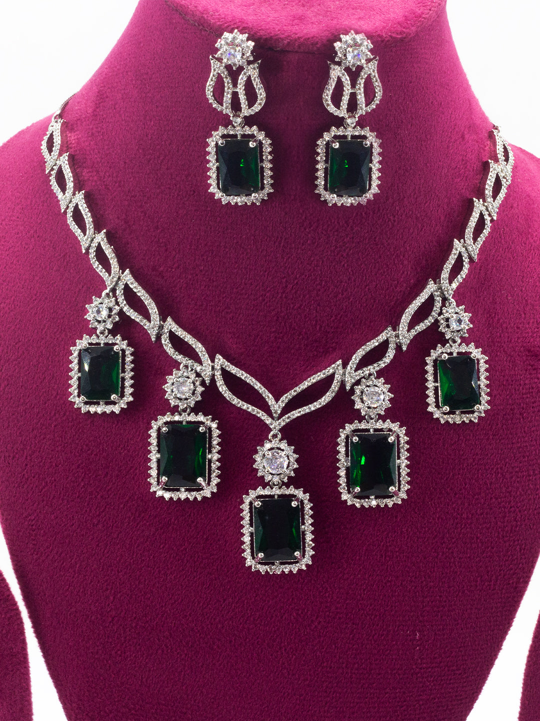 Rhodium Plated Green American Diamond Semi-Bridal Jewellery Set