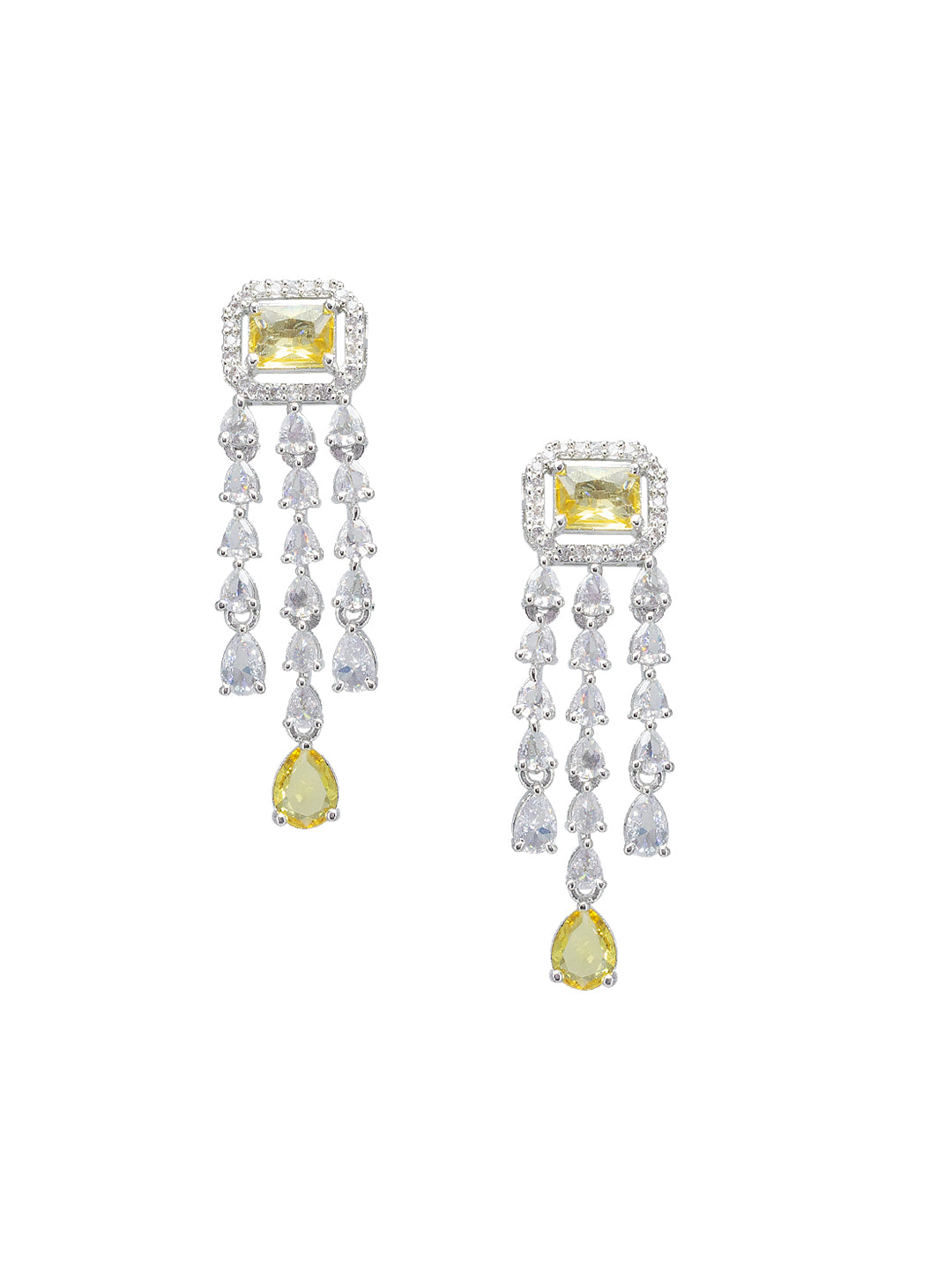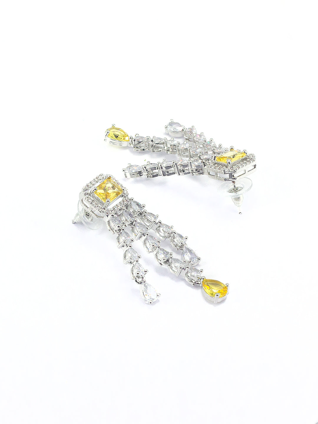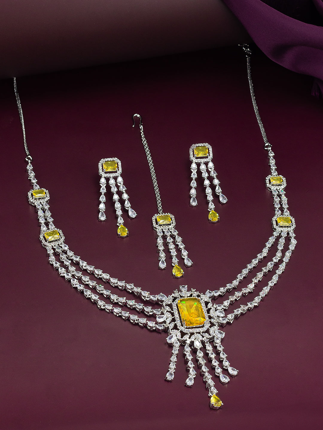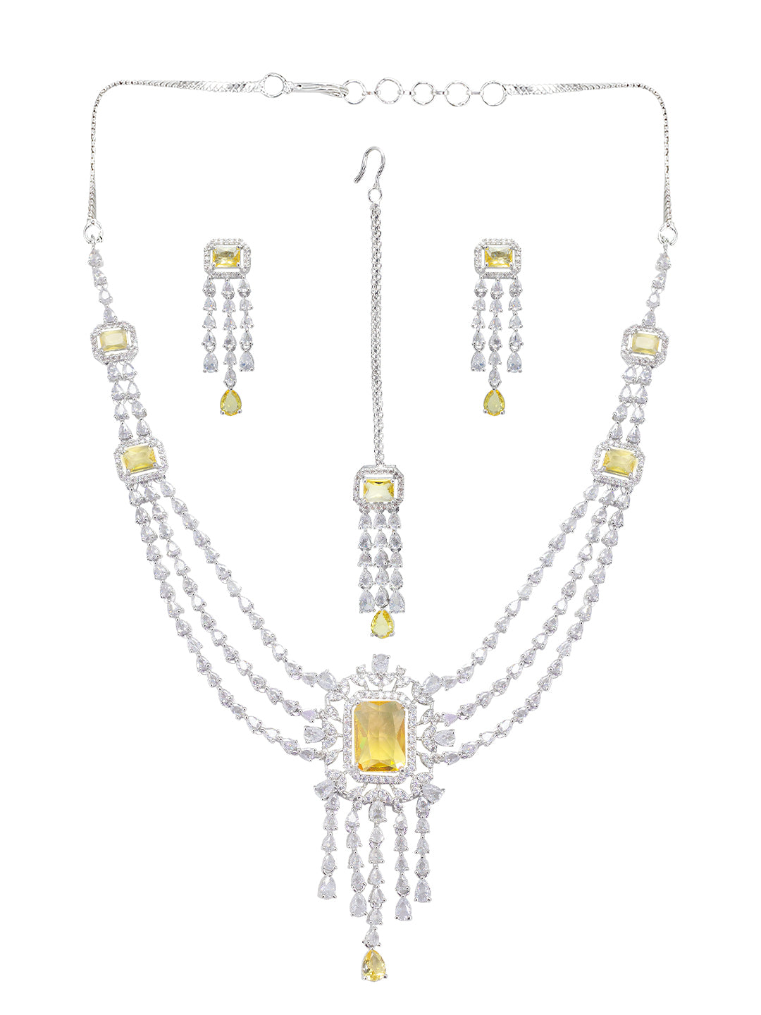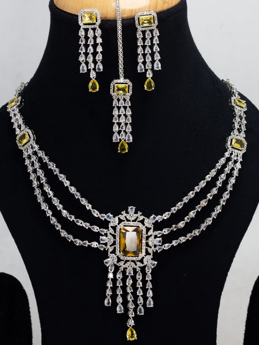 Rhodium Plated Yellow Three Layered AD Bridal Jewellery Set