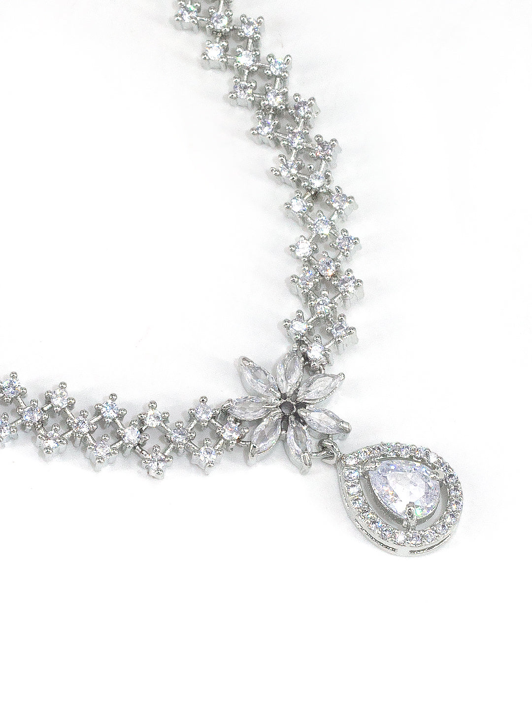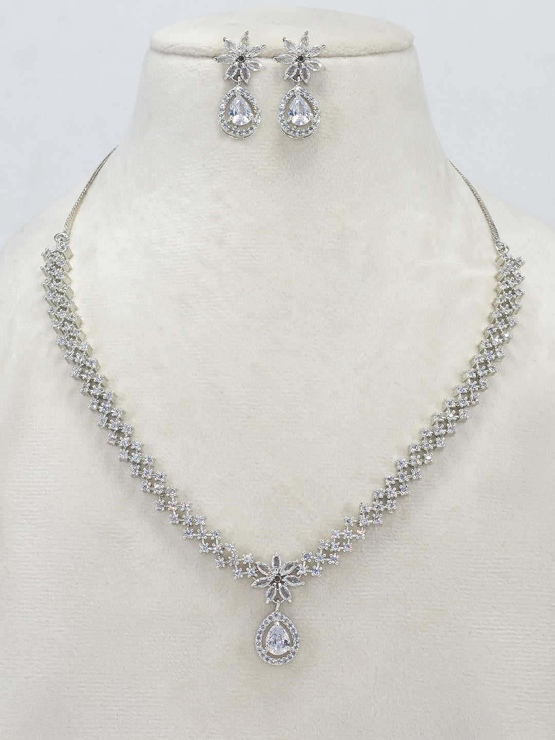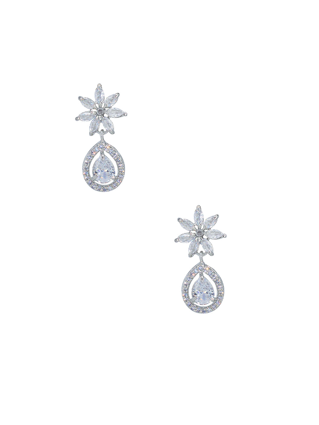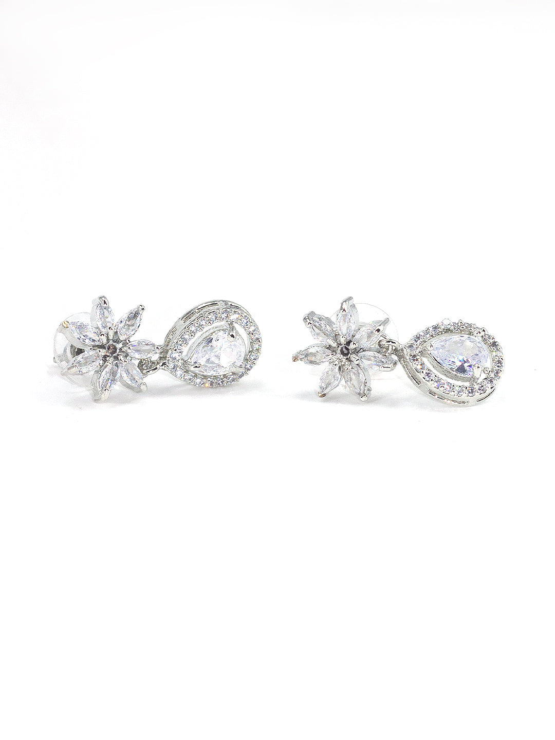 Rhodium Plated American Diamond Floral Drop Jewellery Set