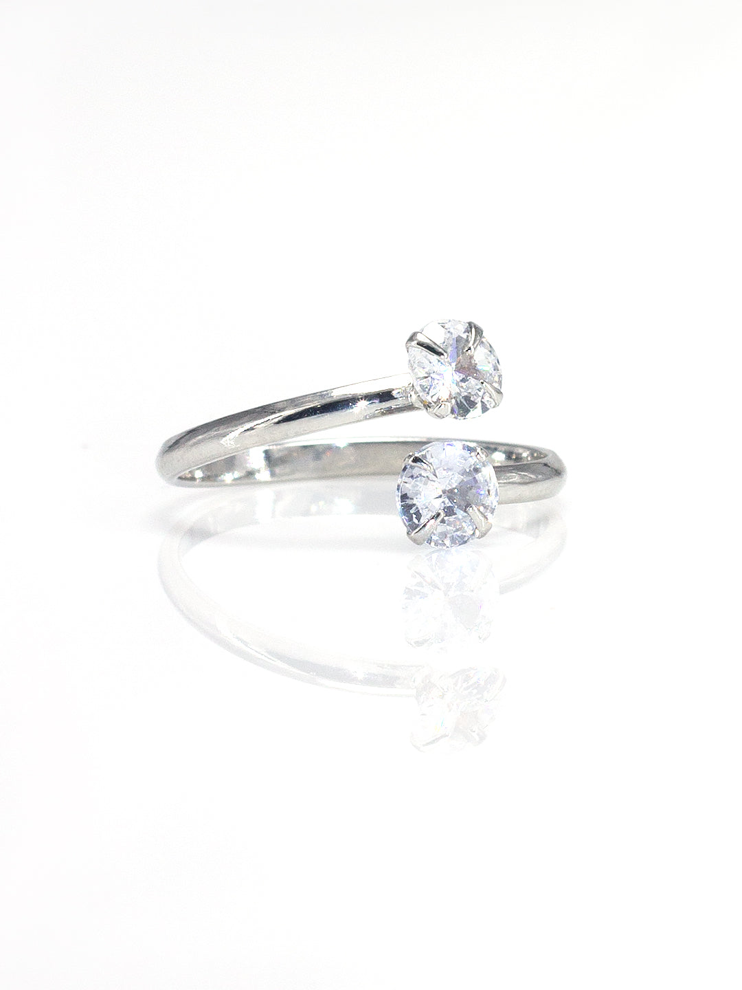 Rhodium Plated American Diamond Adjustable Finger Ring
