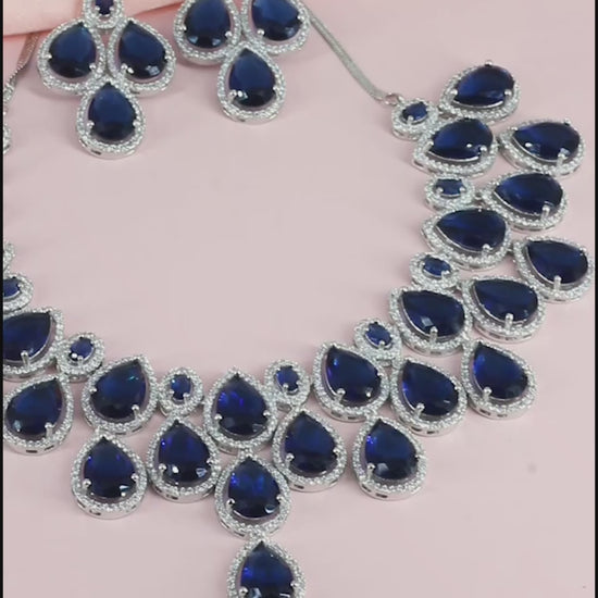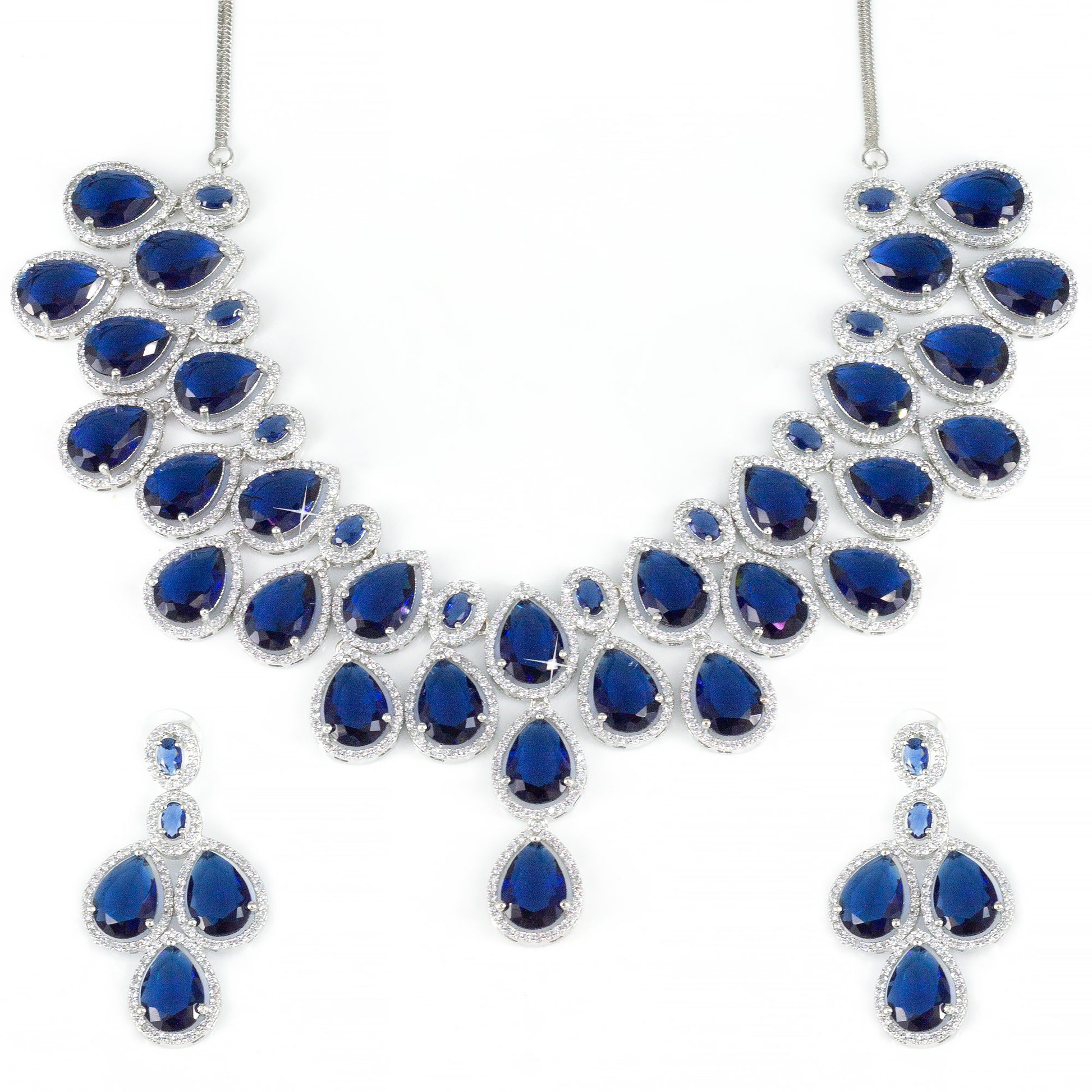 Rhodium Plated Teardrop American Diamond Studded Trendy Pendant Set
