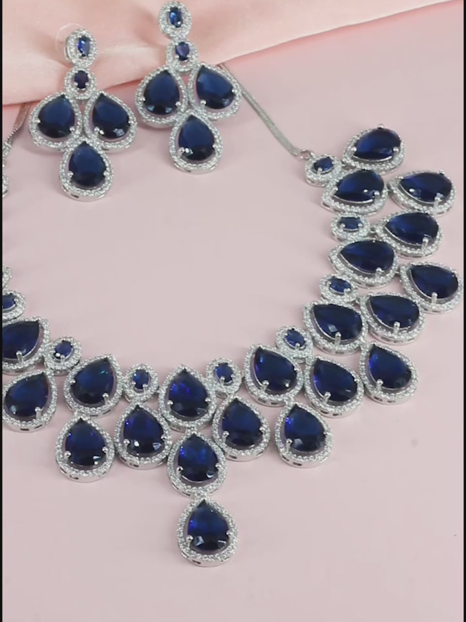 Design: This rhodium-plated jewellery set has statement teardrop design details.
