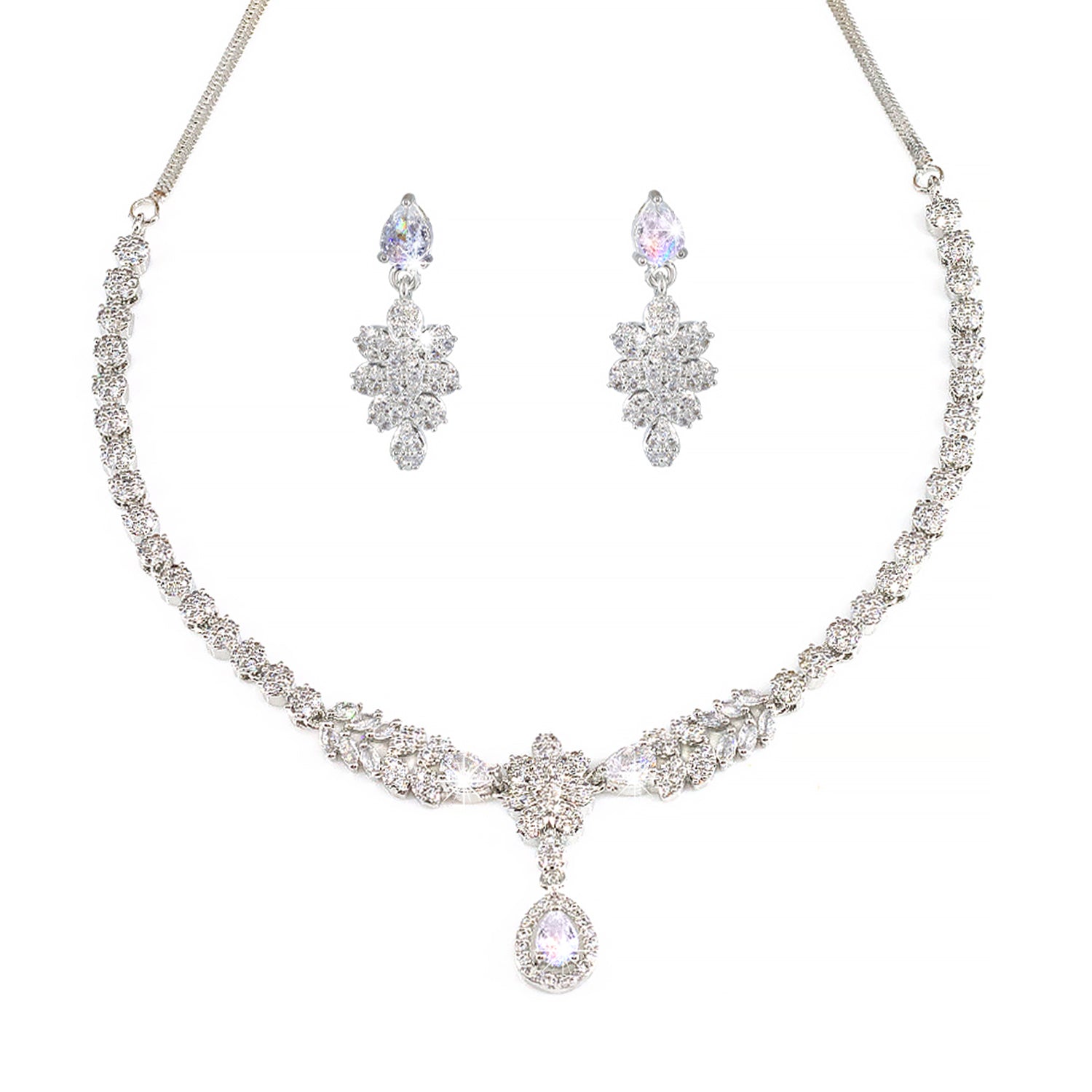 Design: This rhodium-plated jewellery set has floral & teardrop design details.