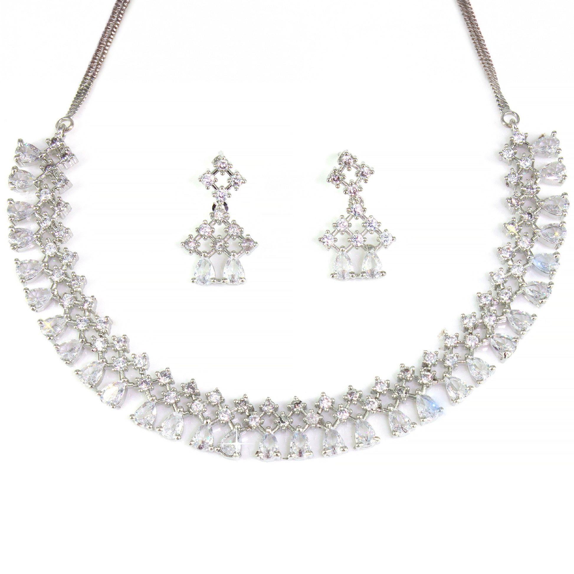 Rhodium-Plated Teardrop AD-Studded Jewellery Set