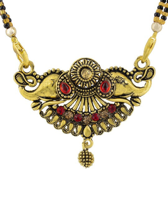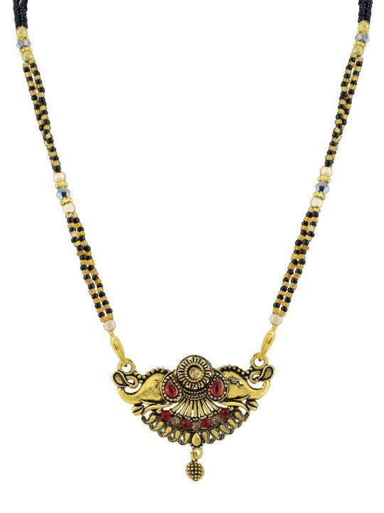 Gold Plated Peacock American Diamond & Black Beaded Trendy Mangalsutra With Earrings