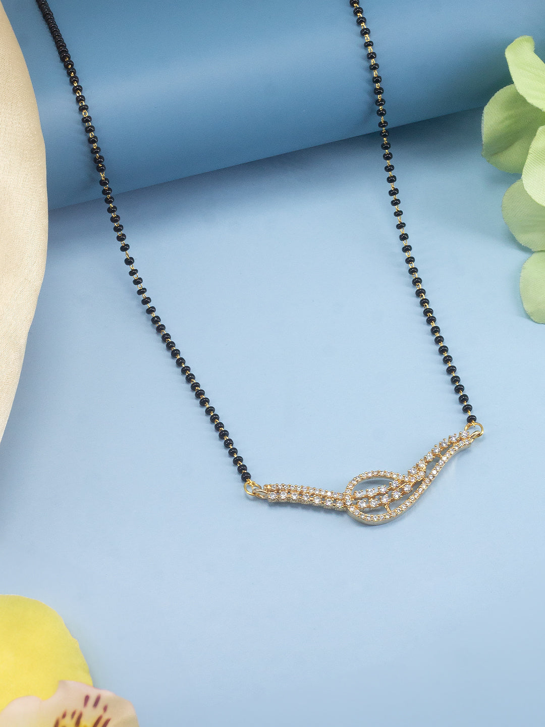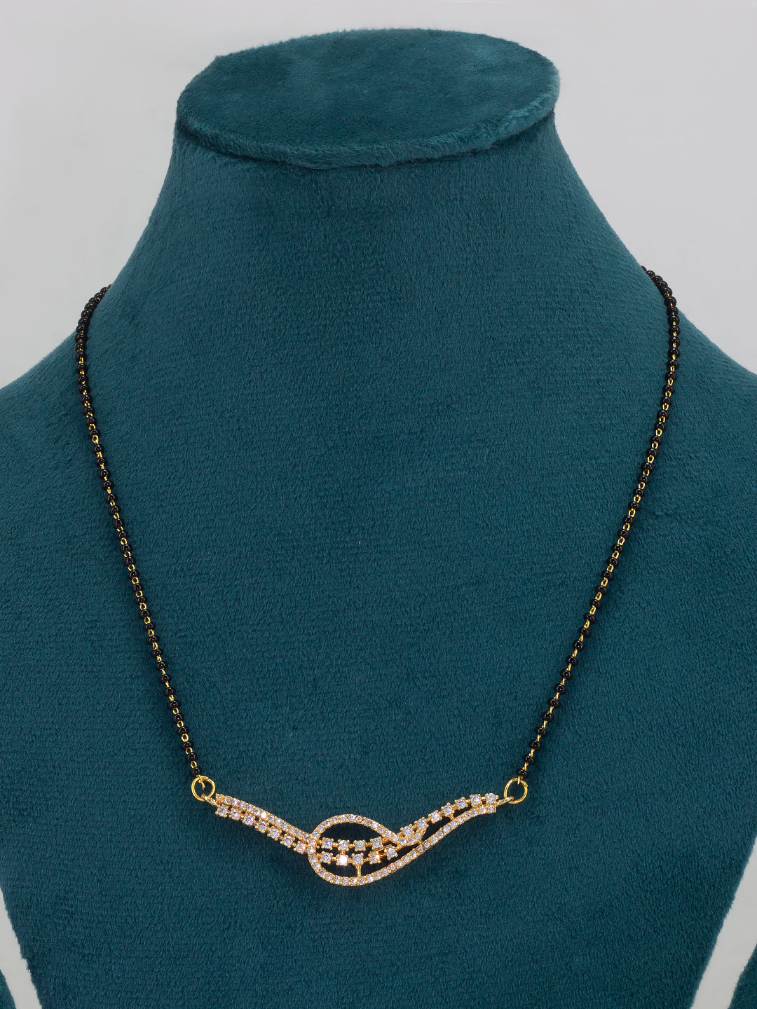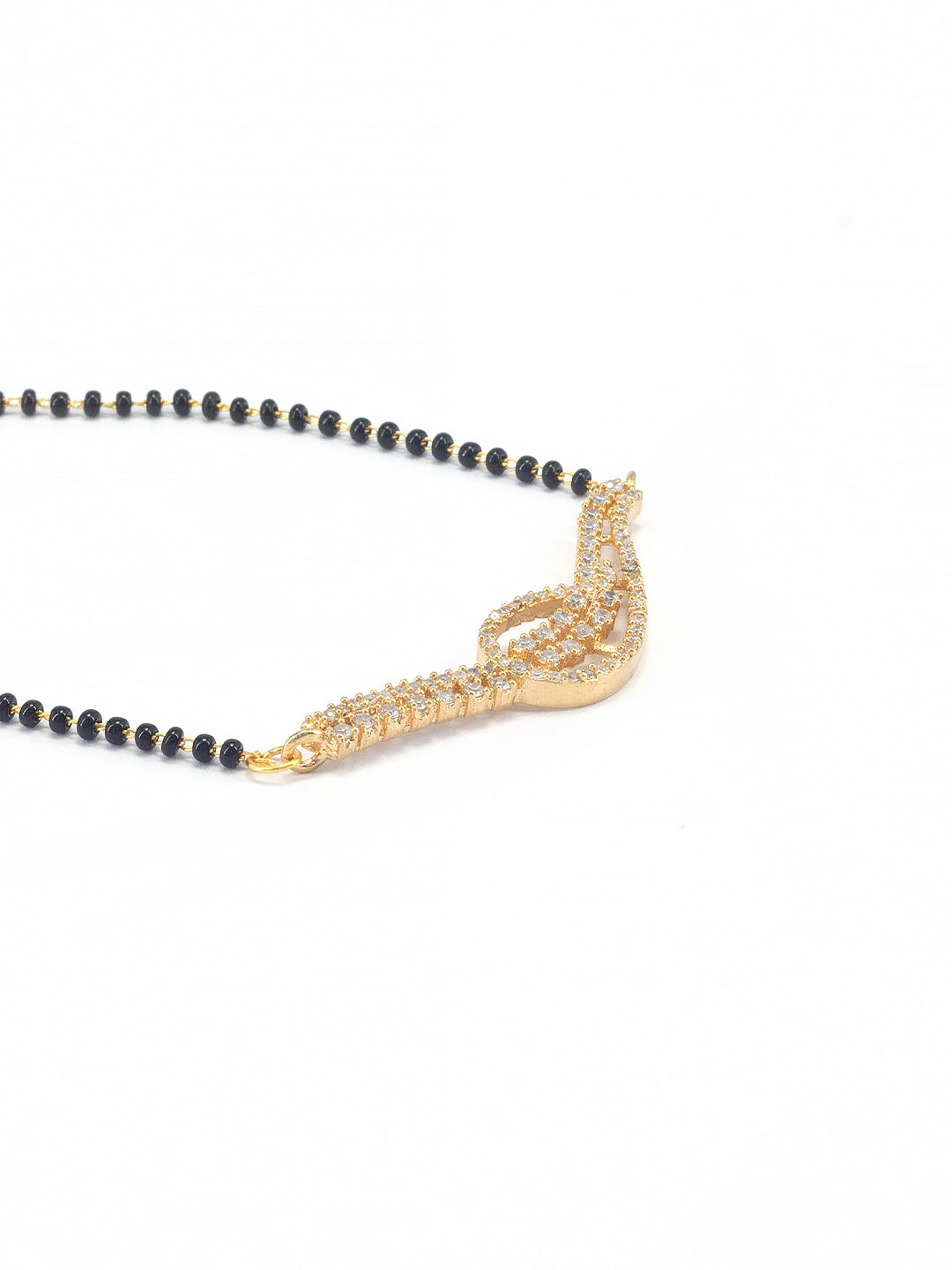 This mangalsutra is gold plated has AD Studded & chain is Black beaded details and secured with s-hook closure.