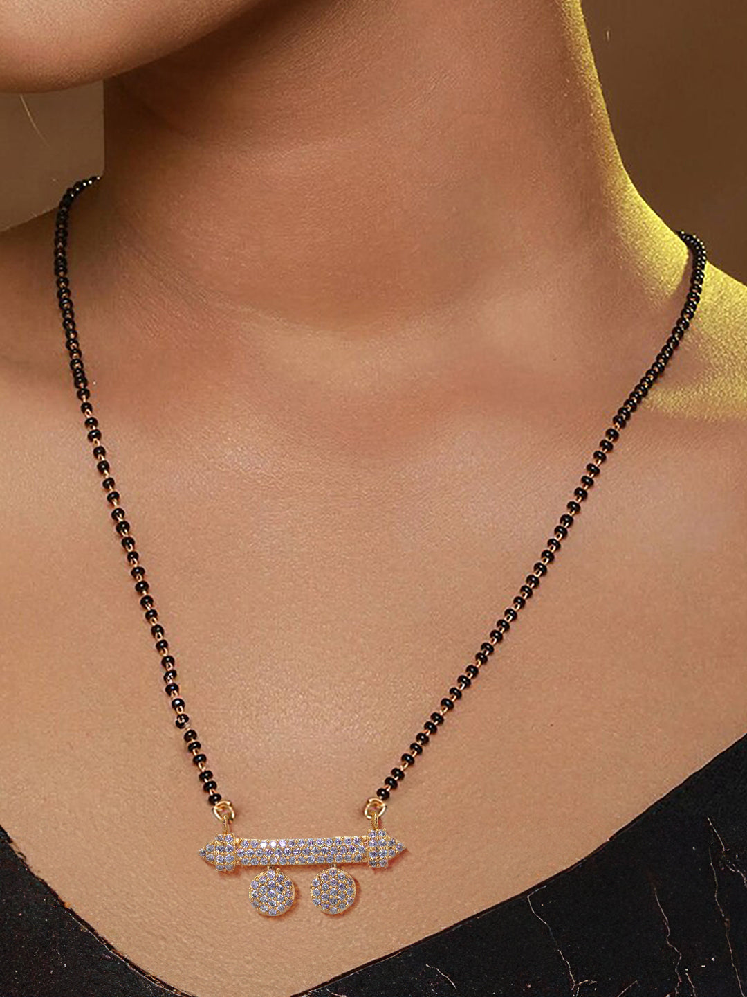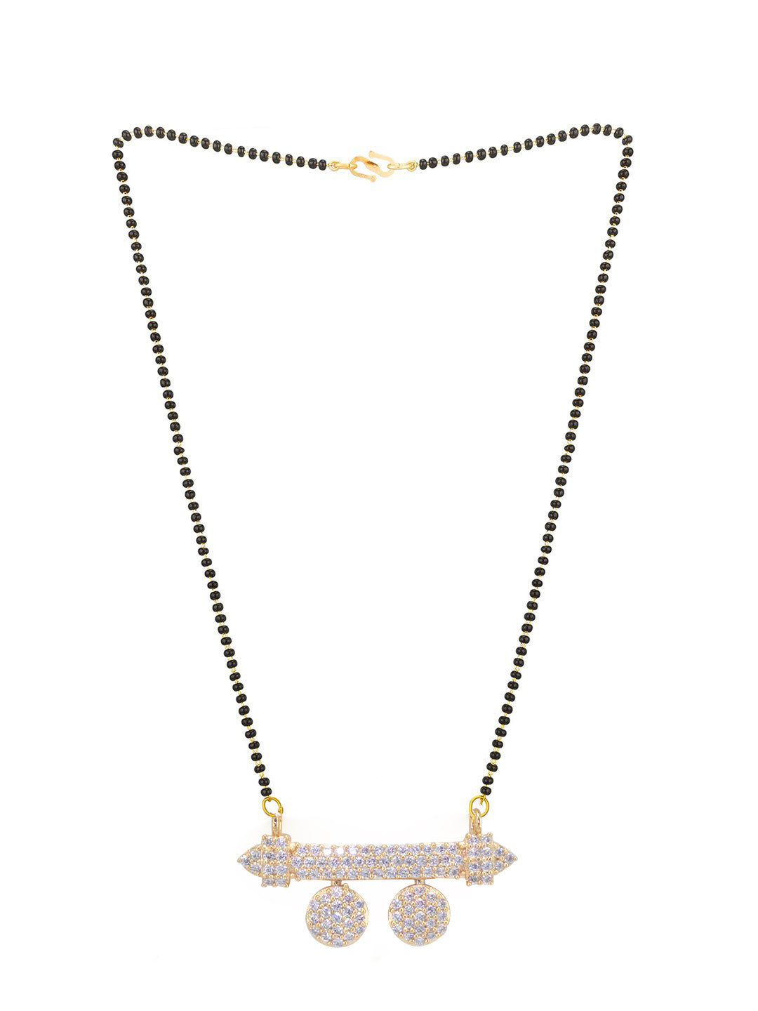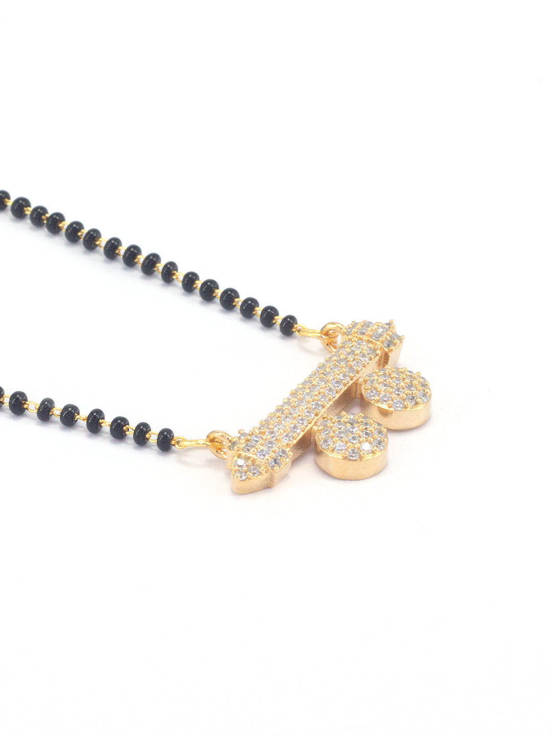 This mangalsutra is gold plated has AD Studded & chain is Black beaded details and secured with s-hook closure.