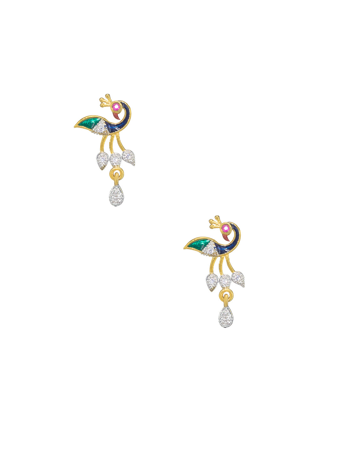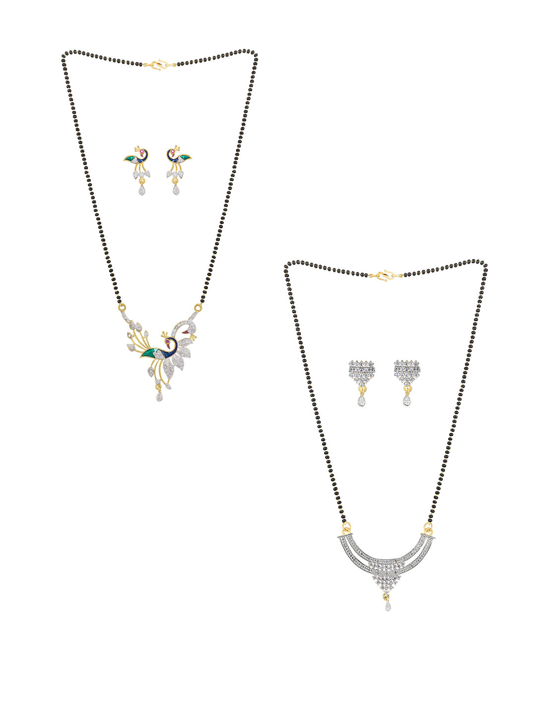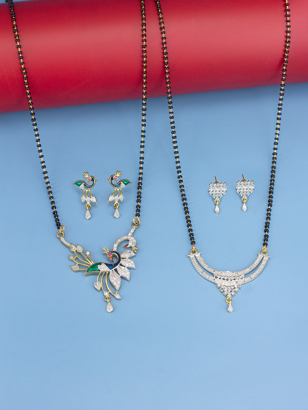 Set Of Two Gold Plated Peacock American Diamond Mangalsutra & Earrings