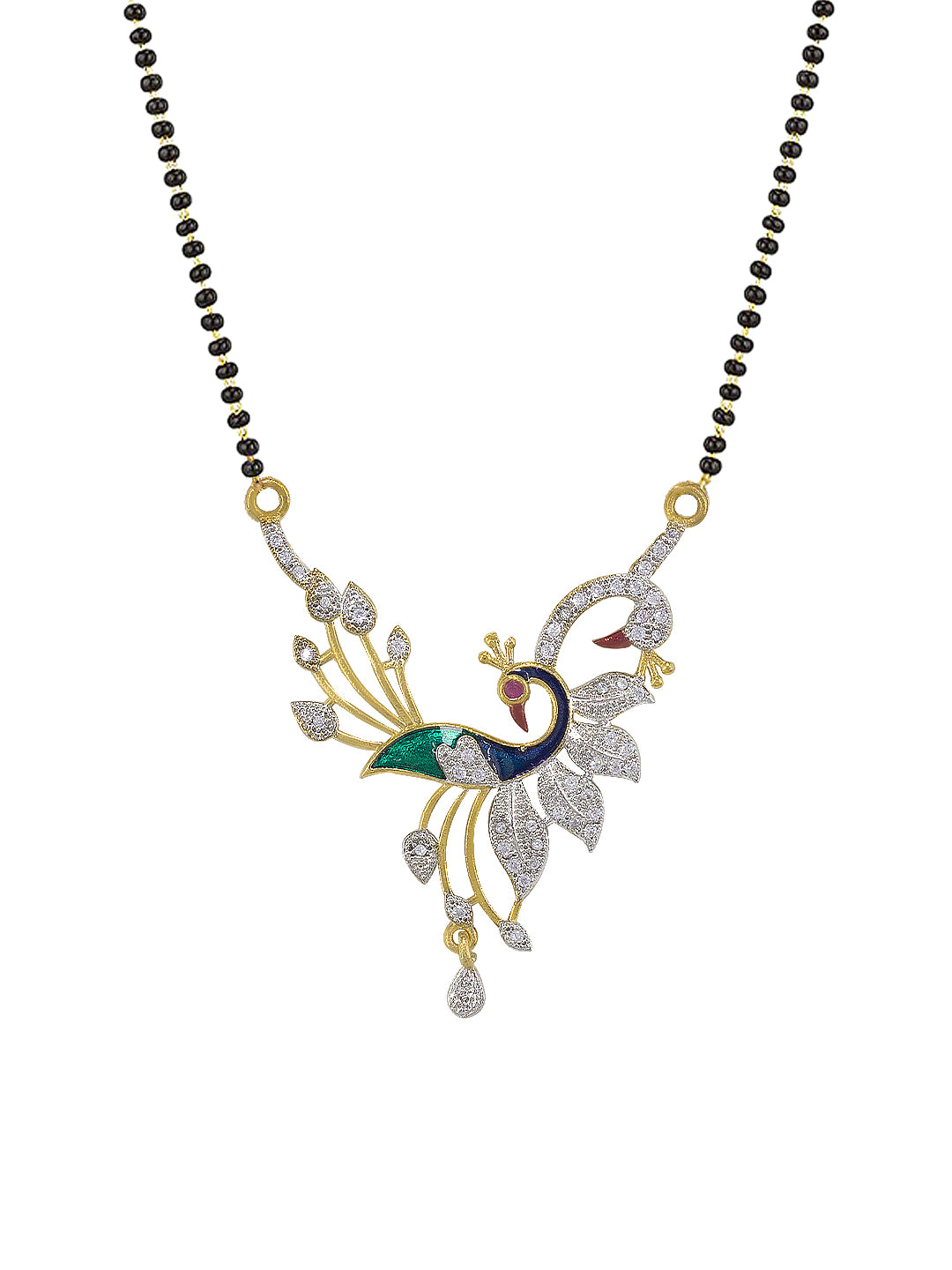 Gold Plated Peacock American Diamond & Black Beaded Trendy Mangalsutra With Earrings