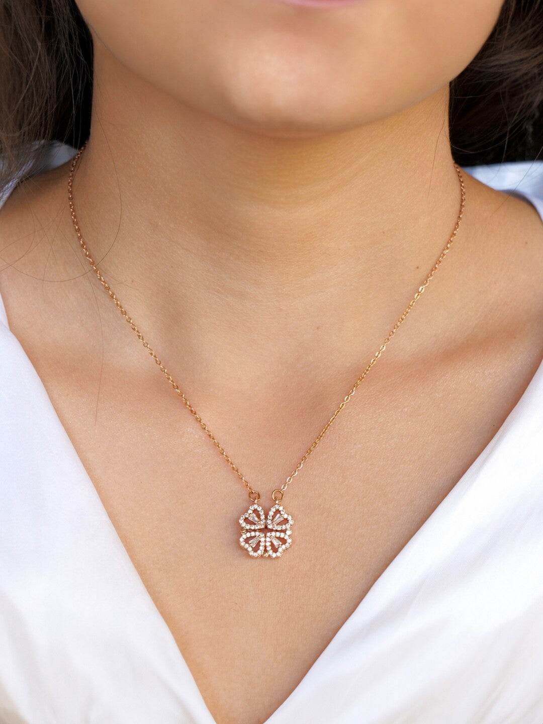 Rose Gold AD Magnetic Heart Trendy Necklace