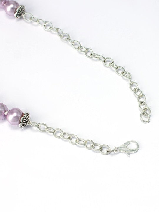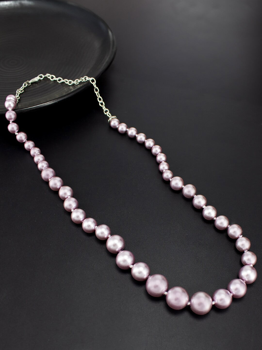 Silver Plated Artificial Beads Stainless Steel Necklace