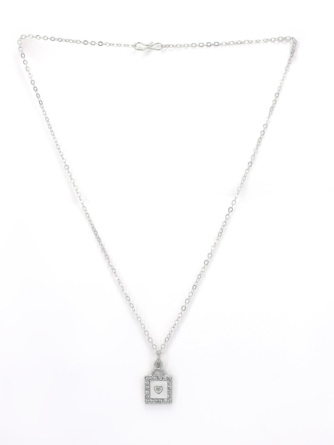 Romantic Silver Plated Stainless Steel Non Tarnish Heart Square Chain with Pendant : Express love with glamour, a perfect adornment for special moments.