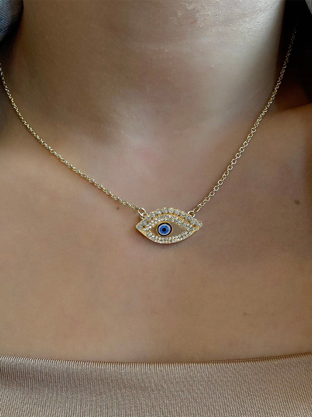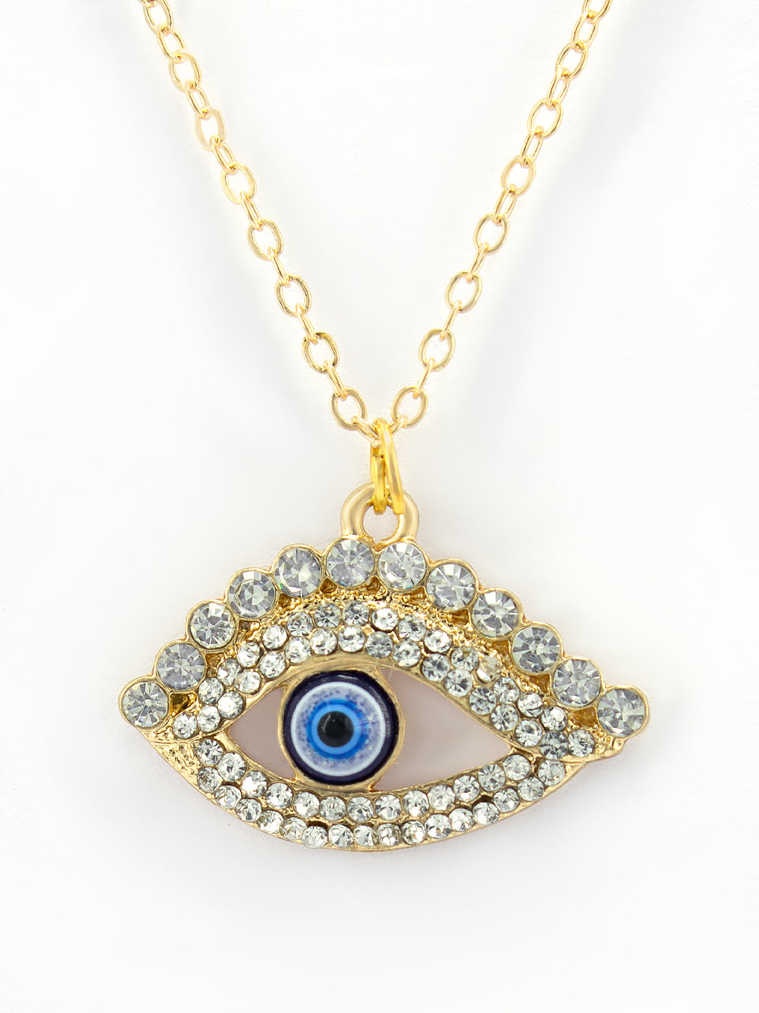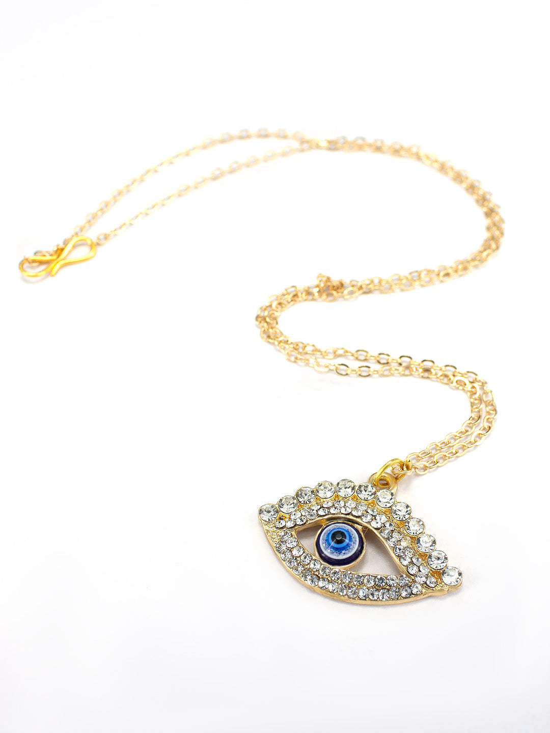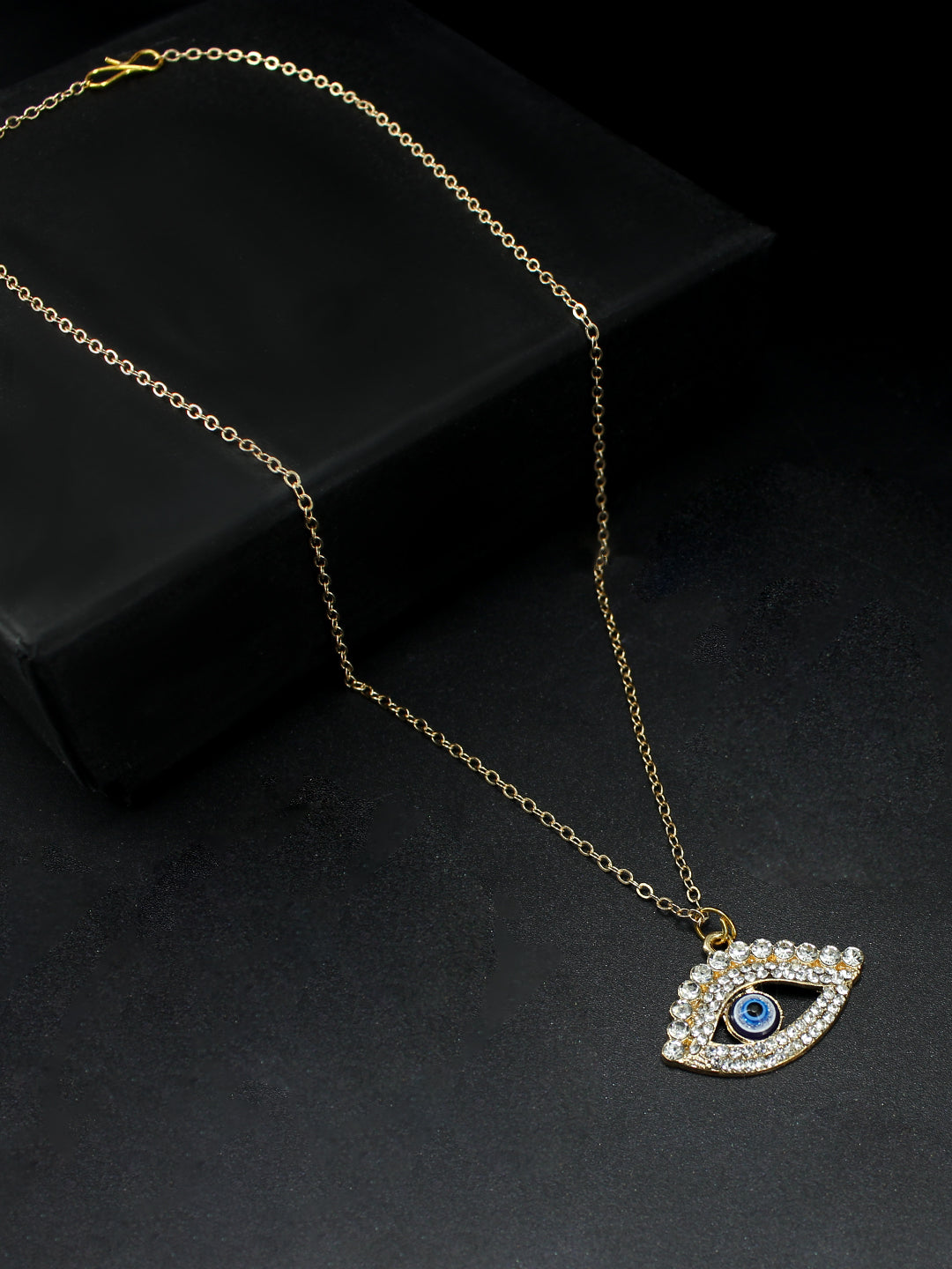 Glamorous Gold Plated Stainless Steel Non Tarnish Evil Eye Chain Necklace : A stylish fusion of protection and elegance for a captivating look.
