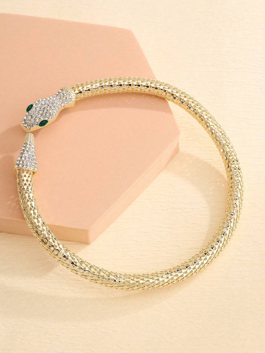 This choker necklace features a unique and contemporary design inspired by a snake, crafted to wrap elegantly around the neck secured with slip on closure.