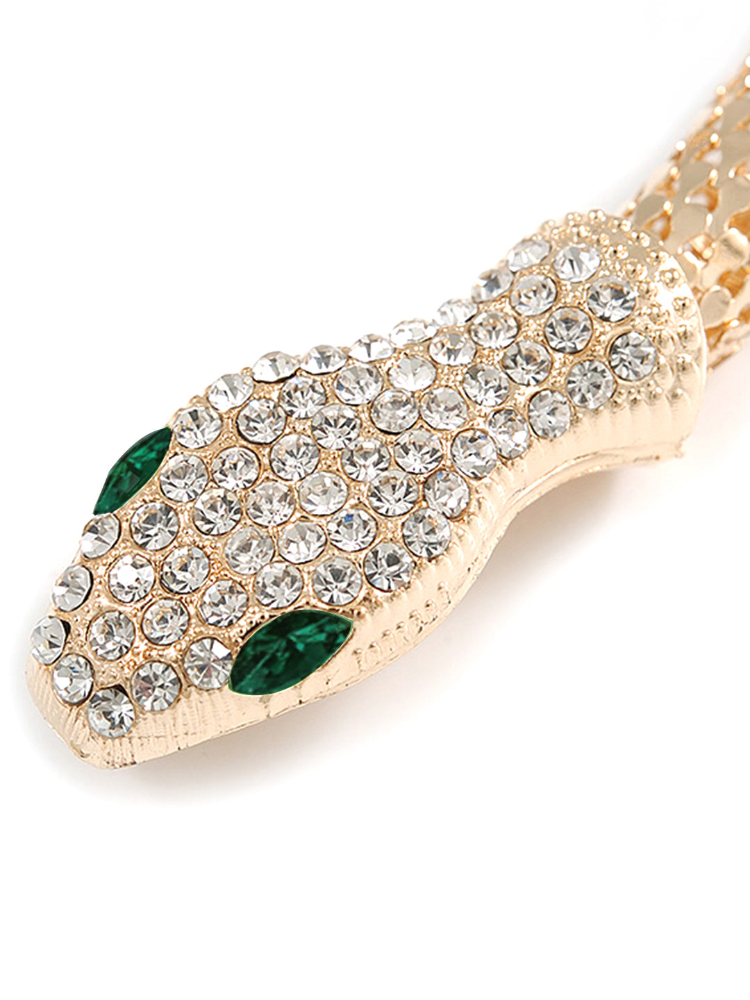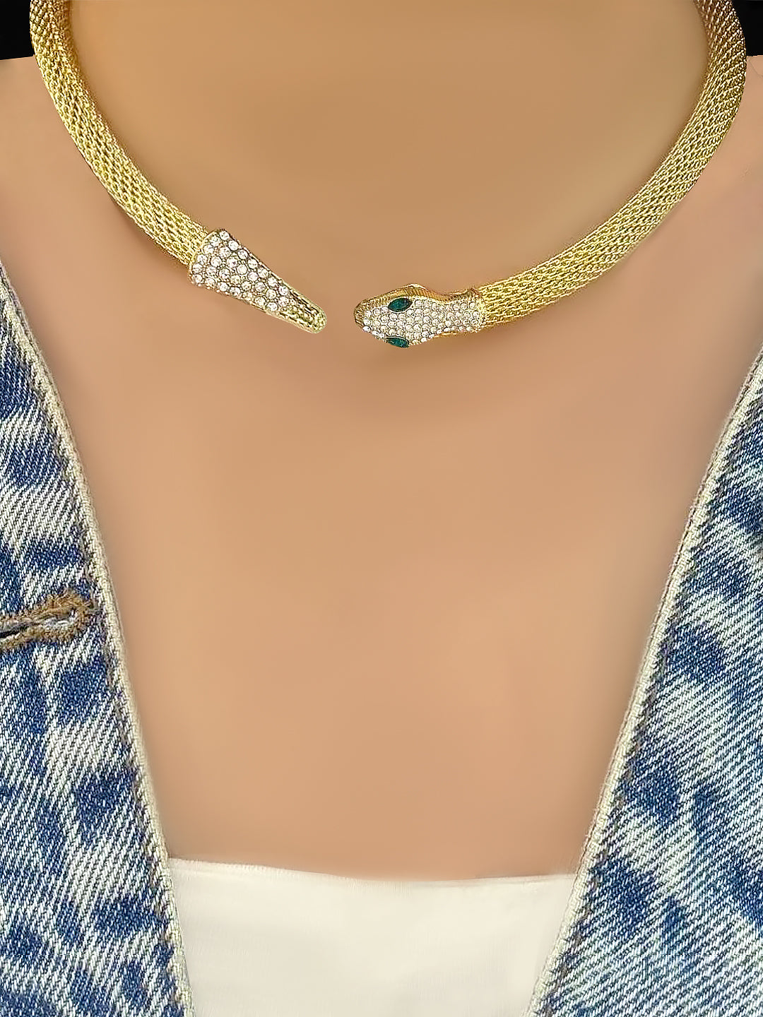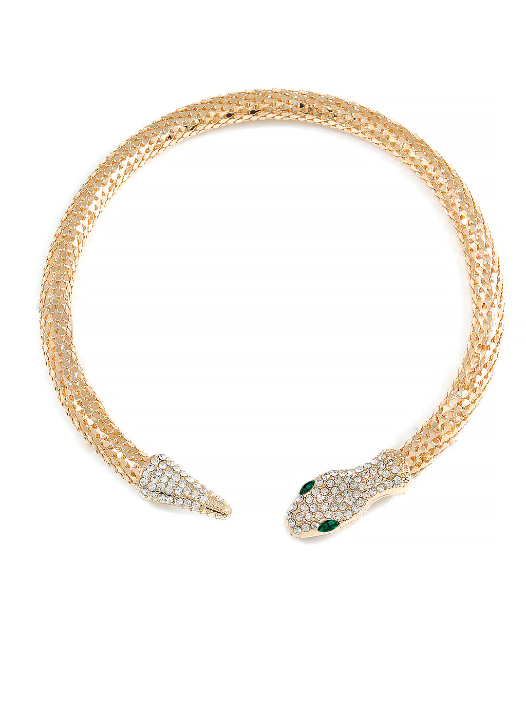 Serpent Gold Plated & Green Rhinestone Hasli Choker Necklace
