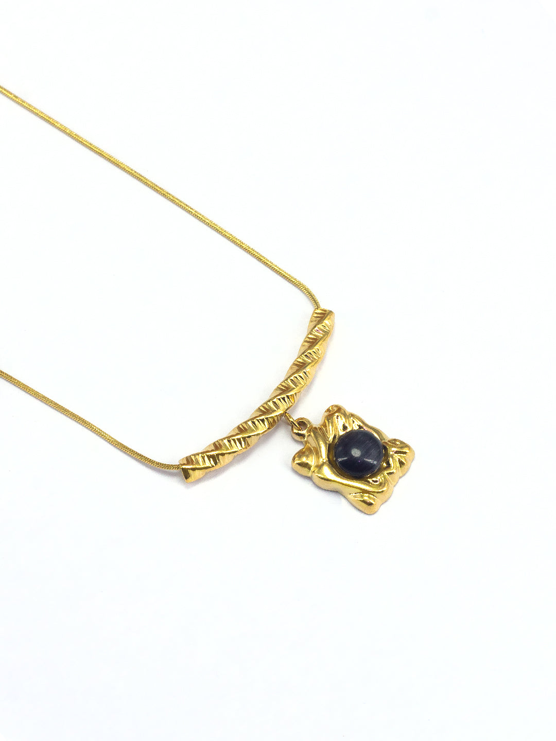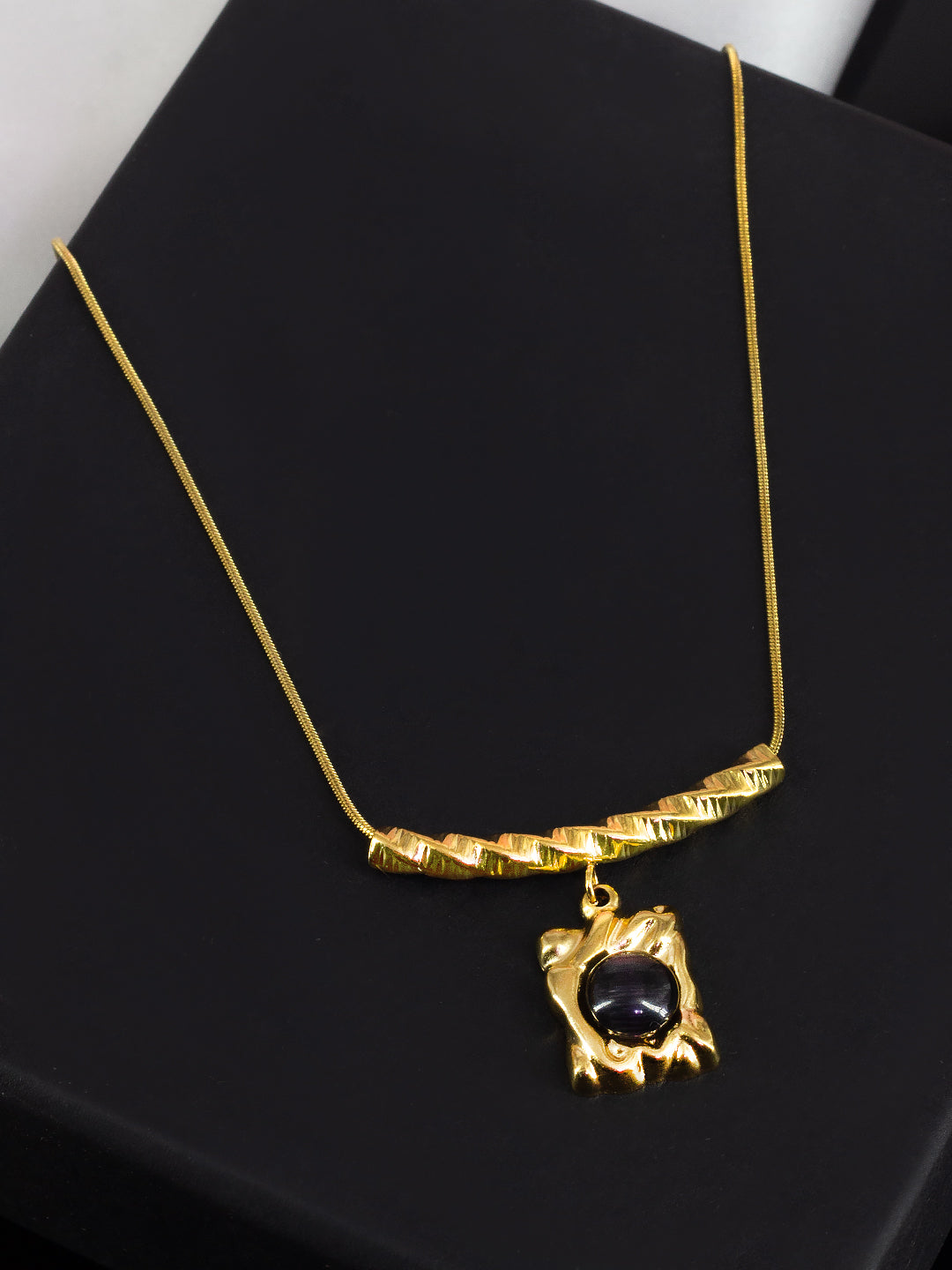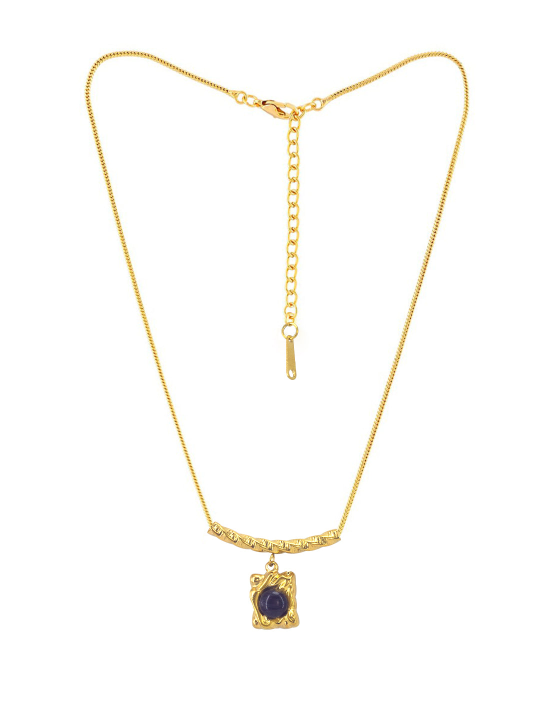 Stainless Steel Black Stone Chain Necklace | Gold Plated Black Stone Studded Pendant Style Chain Necklace