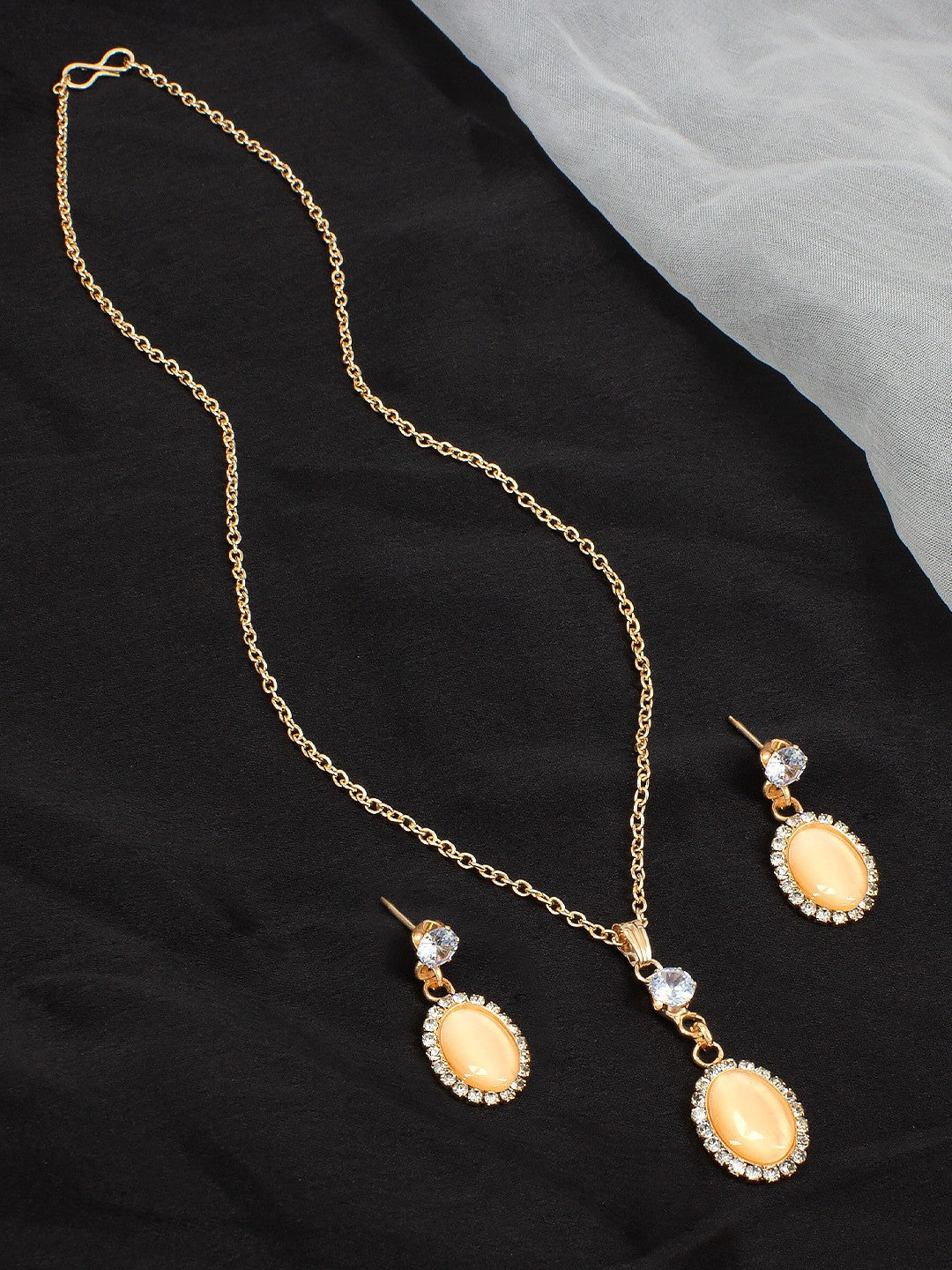 Gold-Plated Green Oval AD-Studded Pendant Set