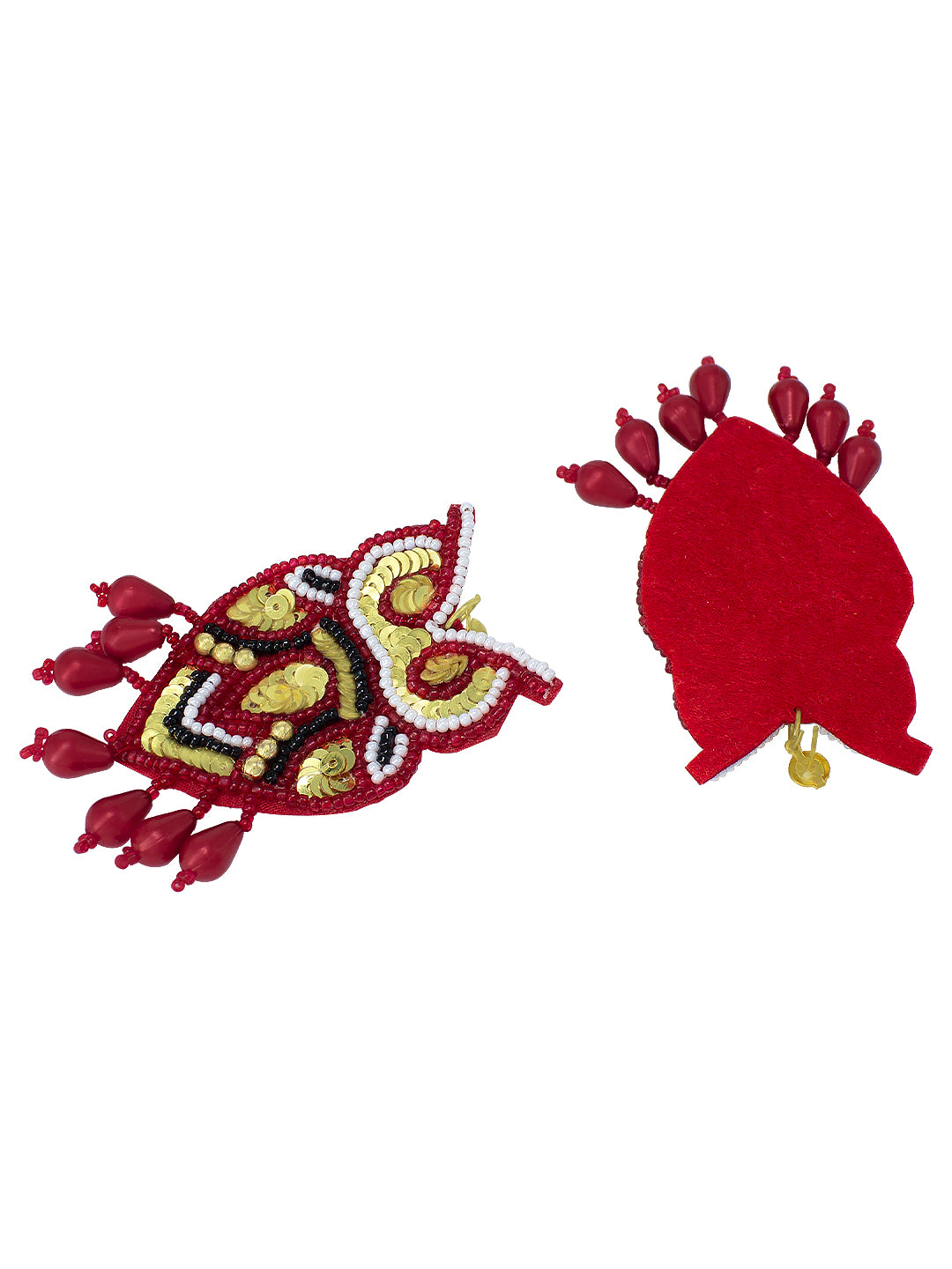 Red owl shaped drop earrings, has artificial beads