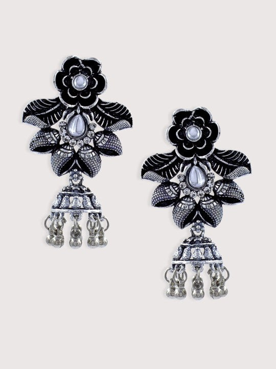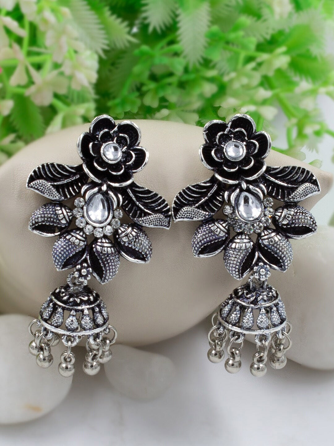 Silver Oxidised Radha Krishna Jhumka Earrings
