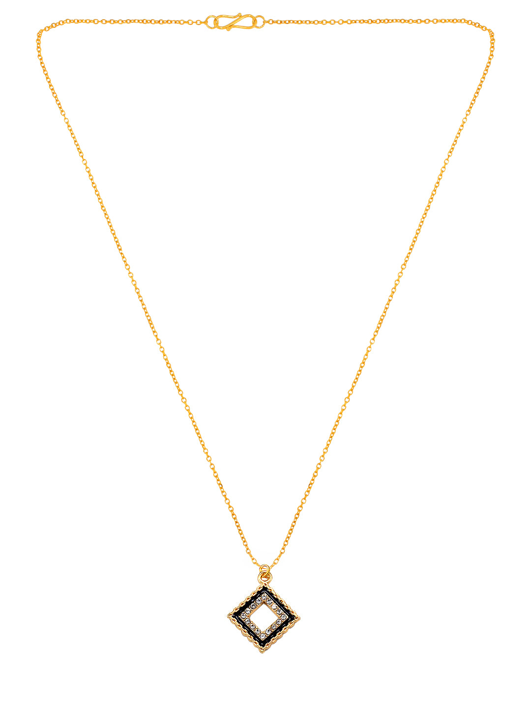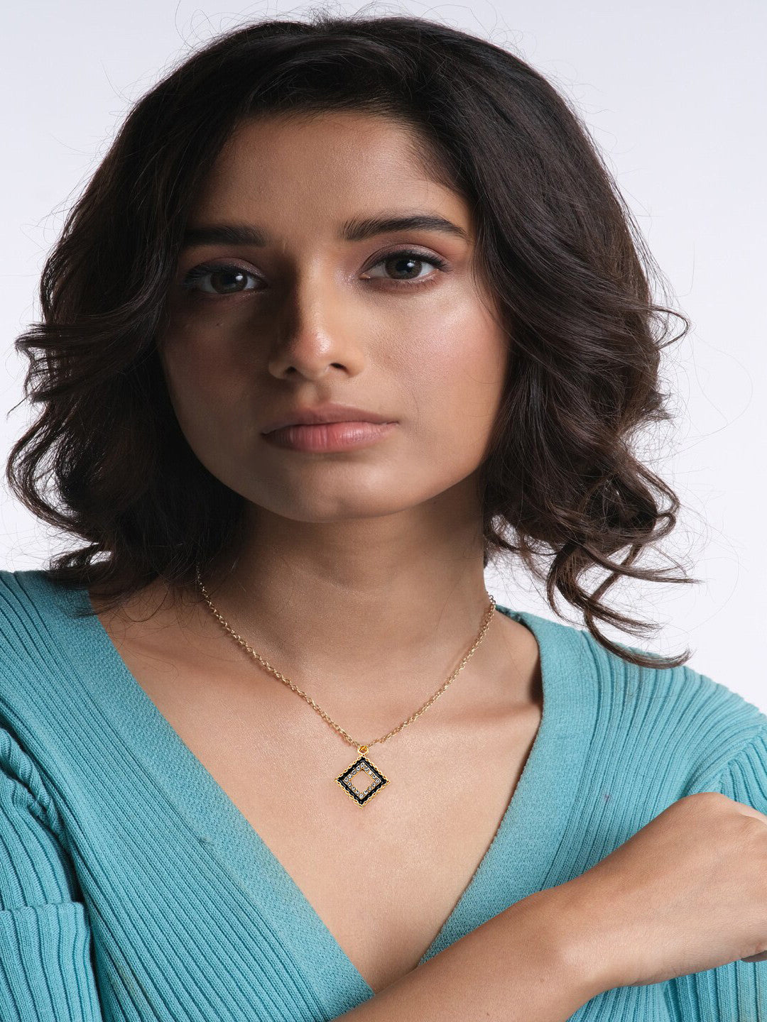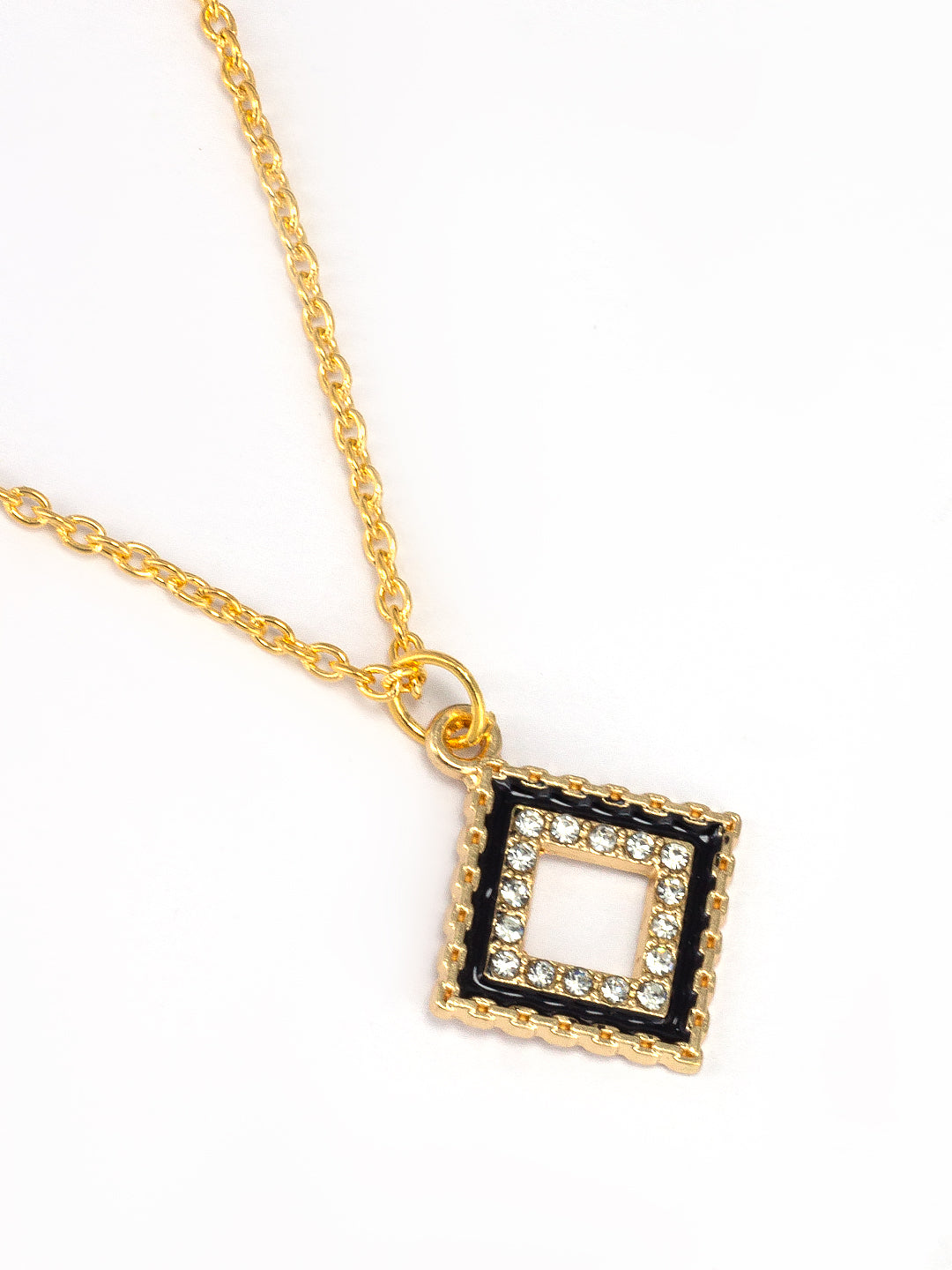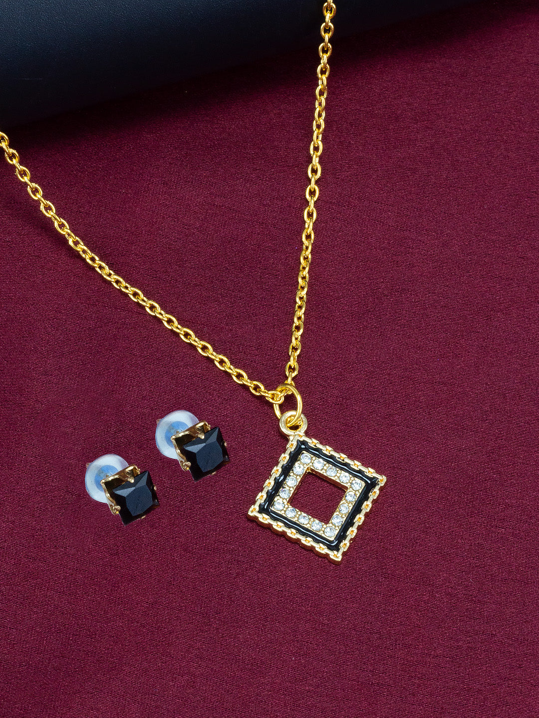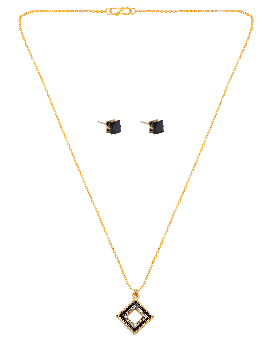 Gold Plated & Black Square Shaped Pendant & Studs Set