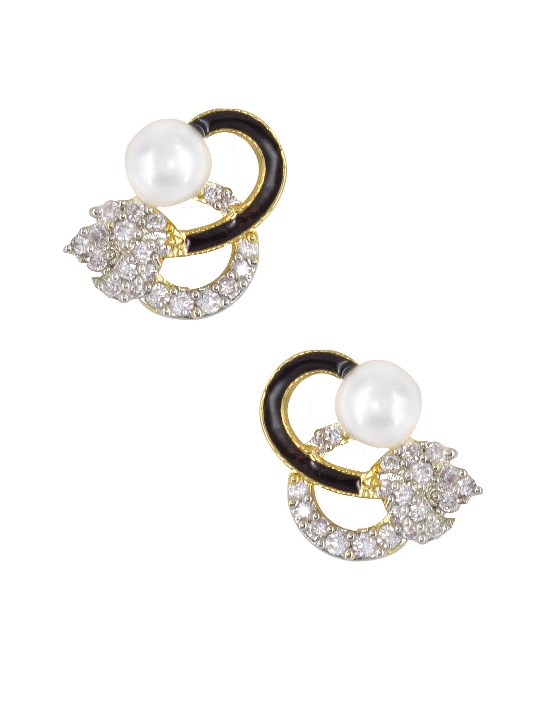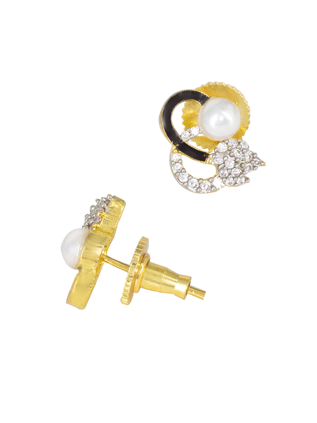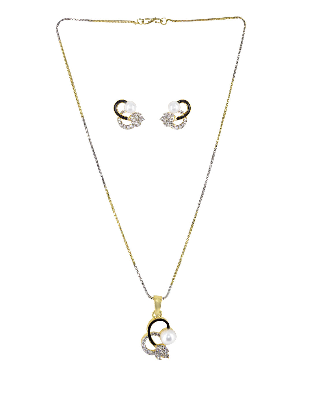 Gold Plated American Diamond Black Mina Trendy Pendant & Earring Set