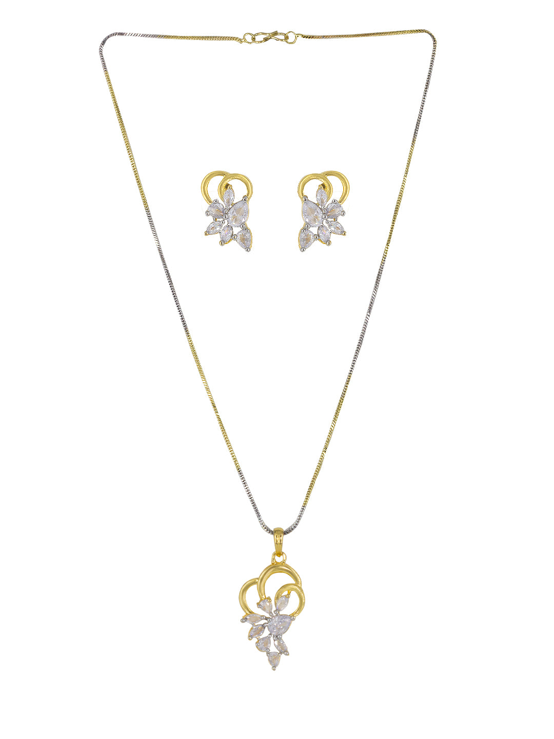 Gold Plated American Diamond Trendy Pendant & Earring Set