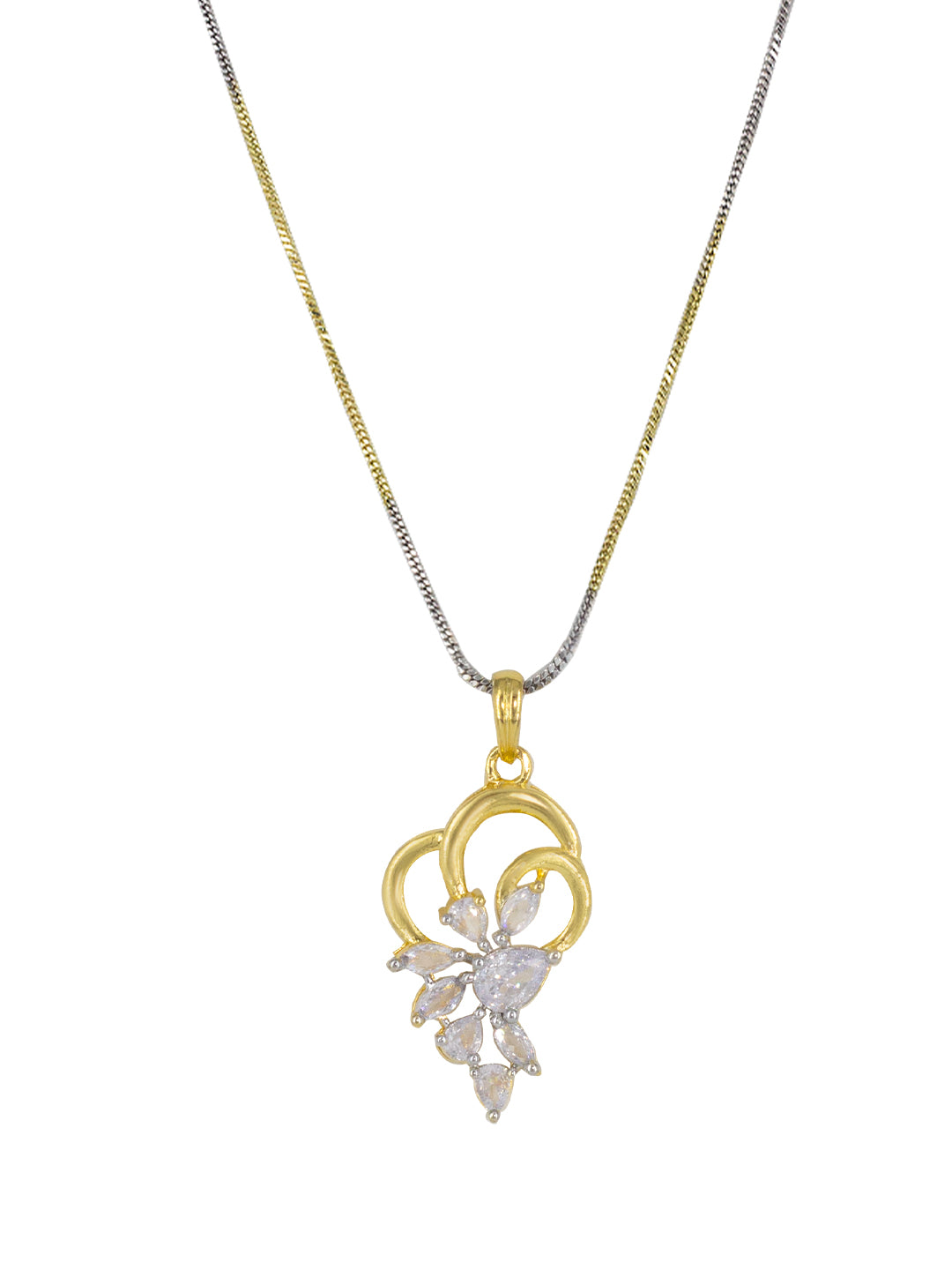 Gold Plated Heart American Diamond Trendy Pendant Set
