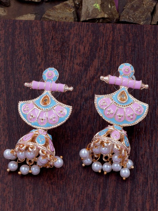 Pink Crescent Shaped Beaded Jhumka Earrings