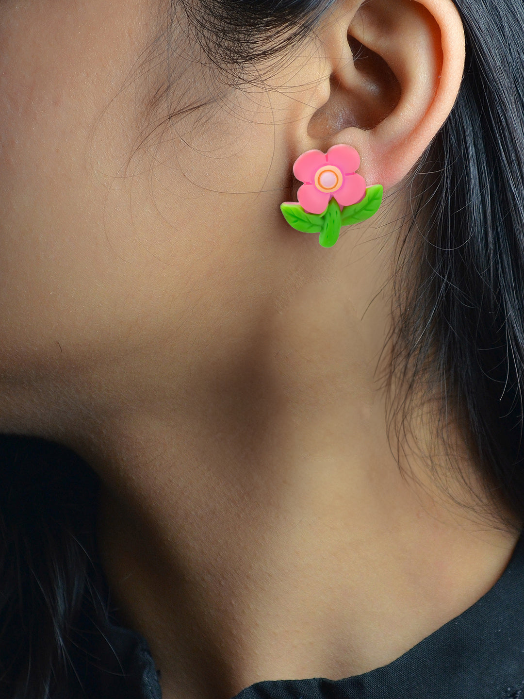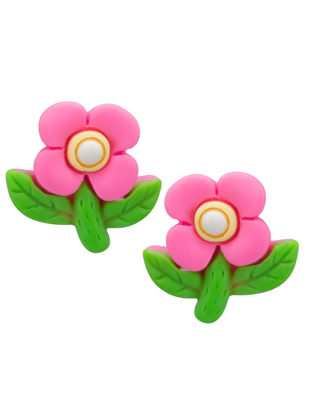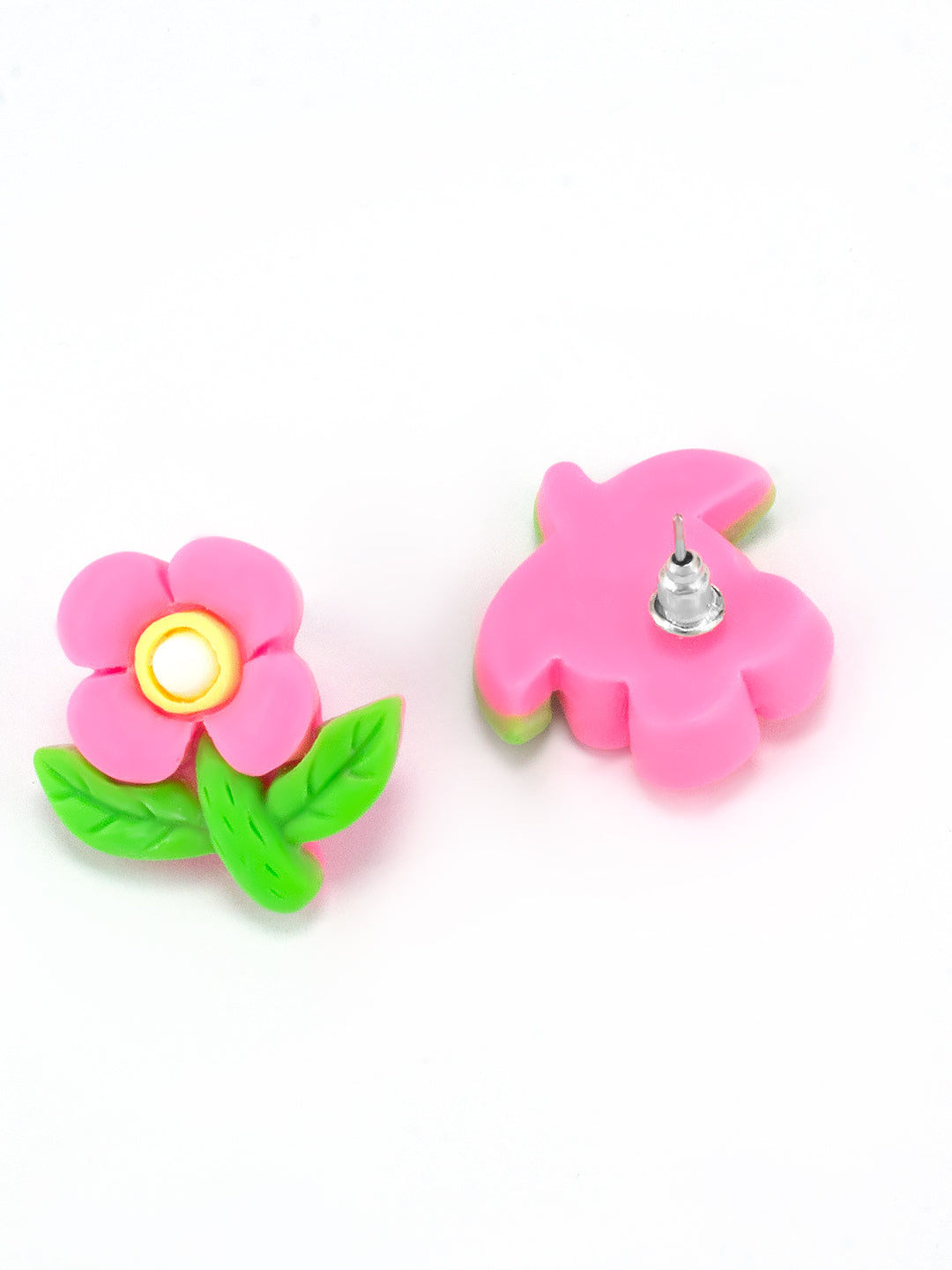 Silver-toned, pink and green floral studs