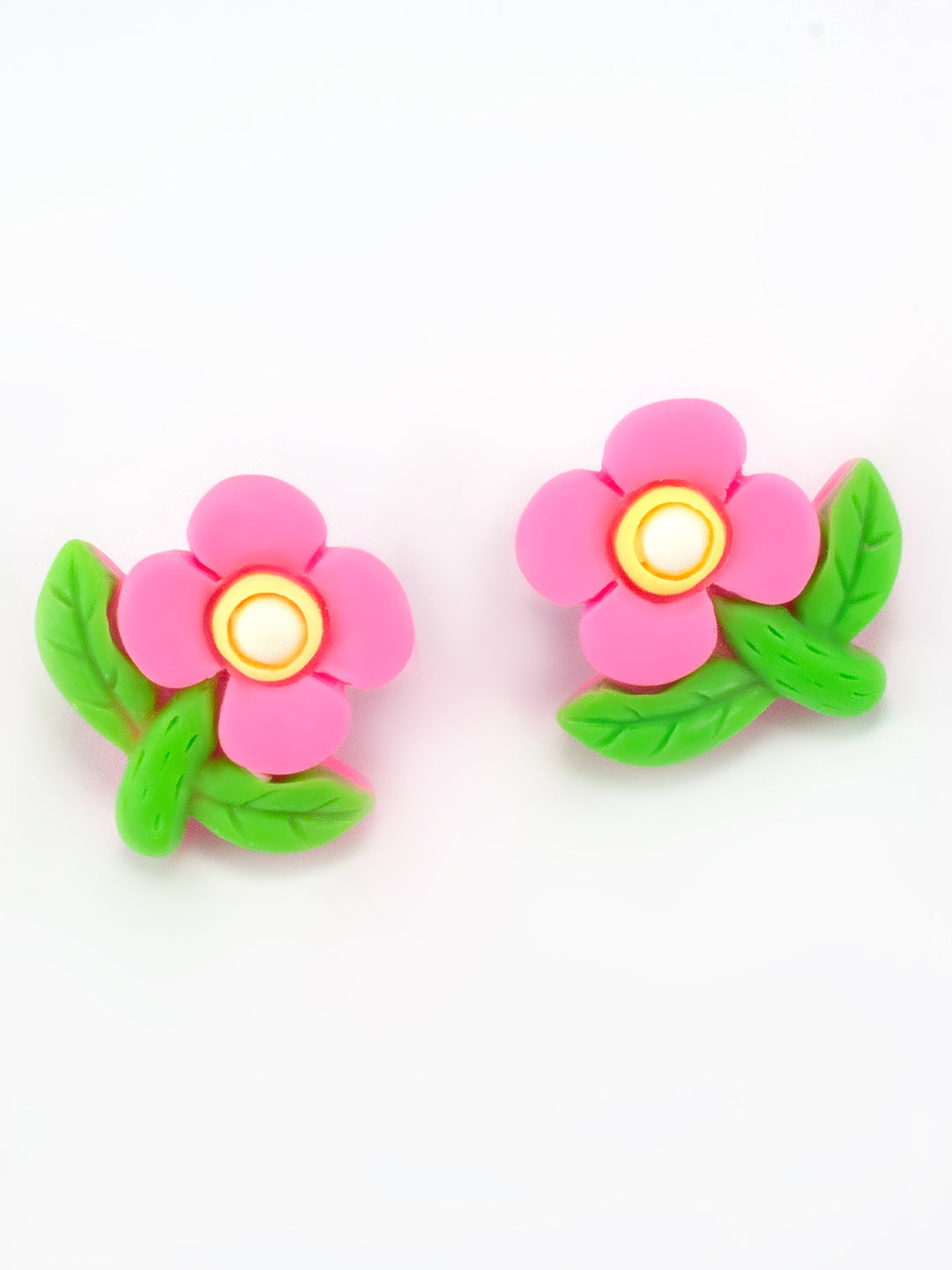 Pink Metal Floral Studs Earrings