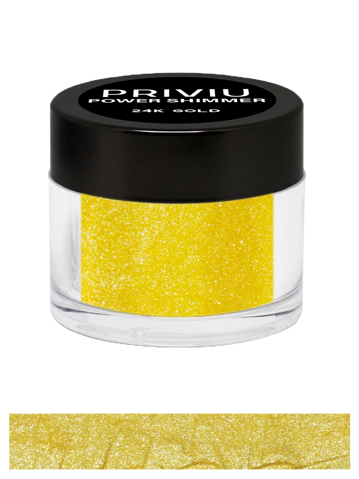 PRIVIU Power Shimmer Metallic Eye Makeup Loose Glitter Eyeshadow Powder (Talc Free) 14 24K Gold, 3g, Made up of natural ingredients, no harmful chemicals used. Preservative free, Cruelty free, Vegan