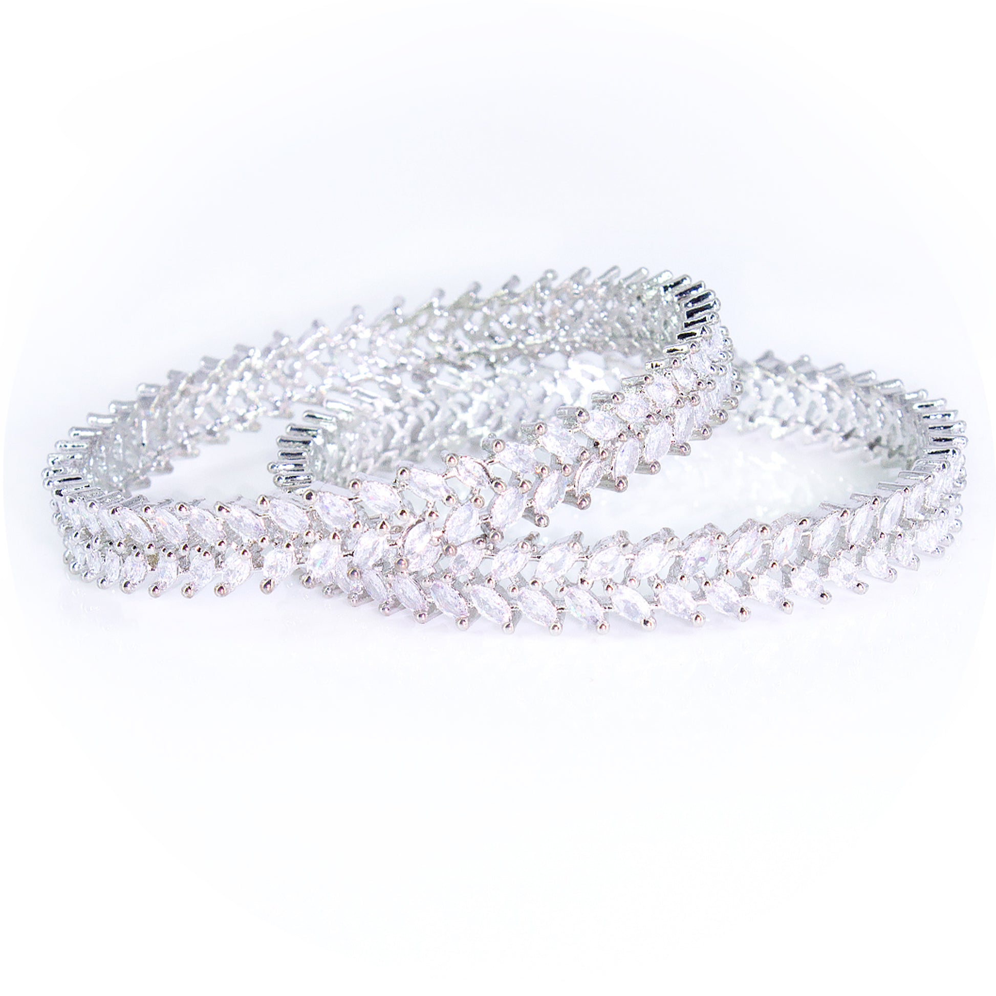 PRIVIU AD Bangles for Women Rhodium Plated American Diamond Traditional Jewellery Bangles Set