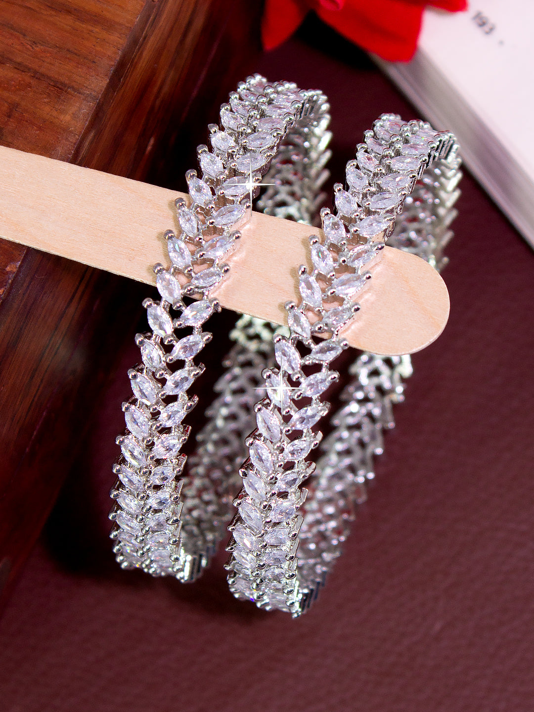 Silver-plated bangles with intricate detailing, adorned with sparkling American Diamonds for a traditional yet elegant festive and bridal look.