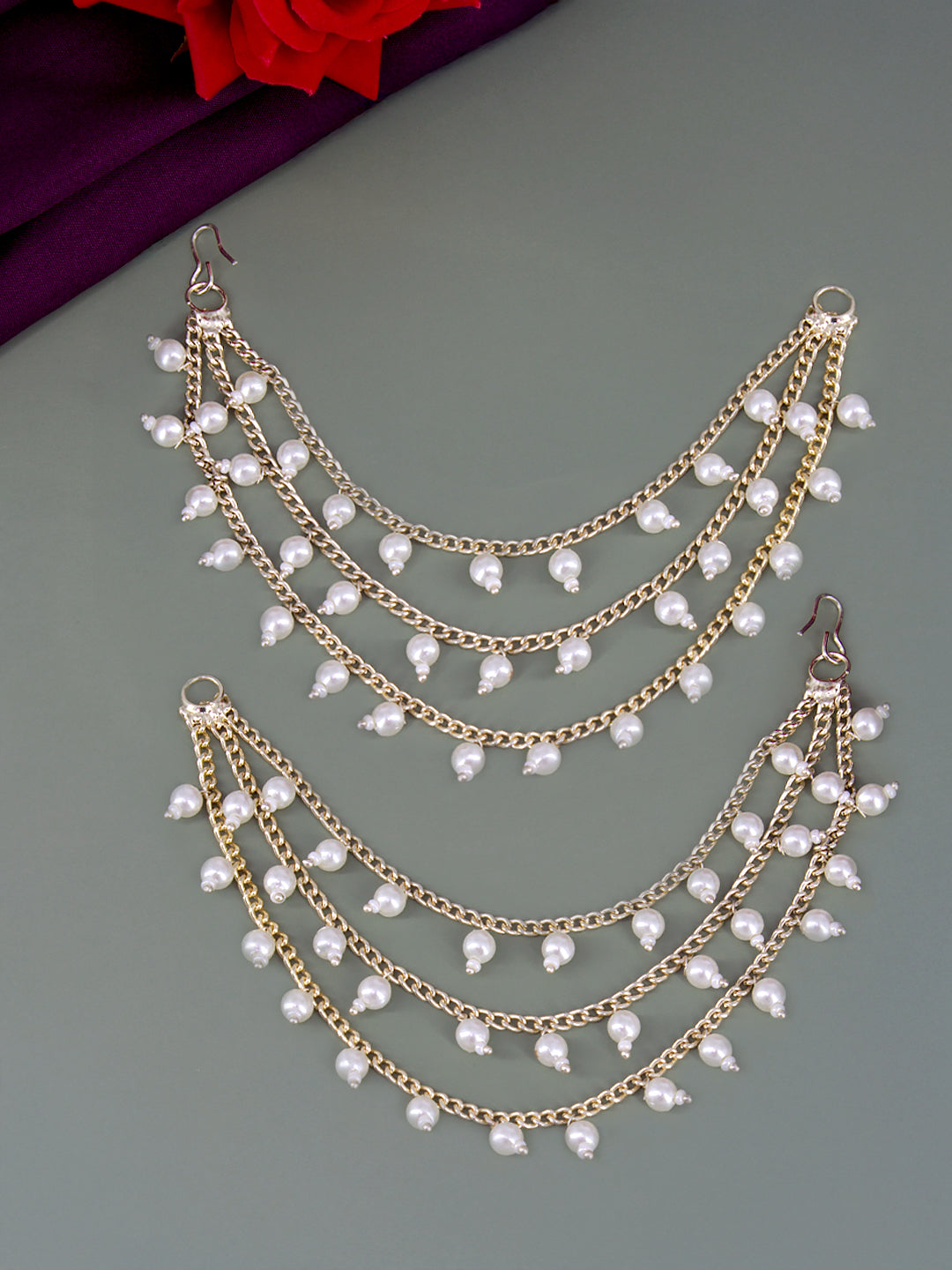 PRIVIU Gold-Plated 3-Layered Beads & Jhumki Spherical Shaped Drop Ear Cuff