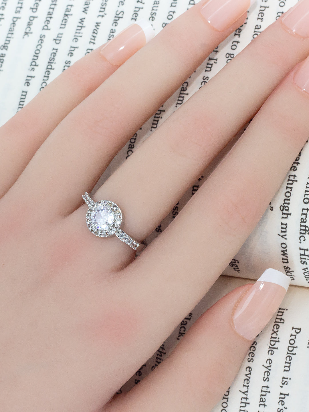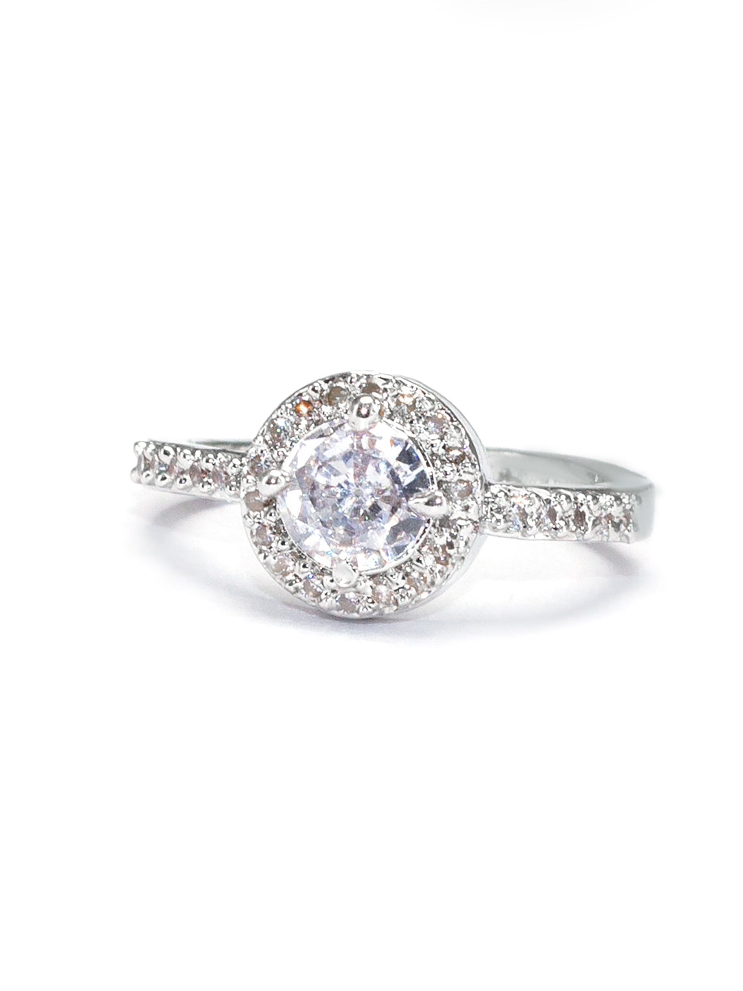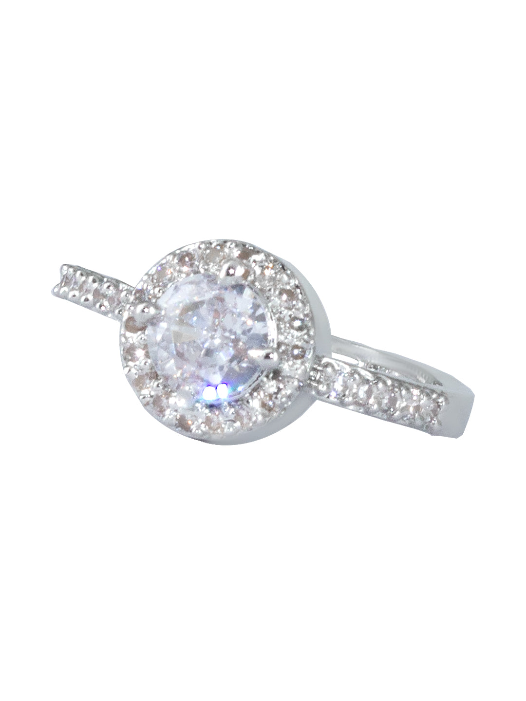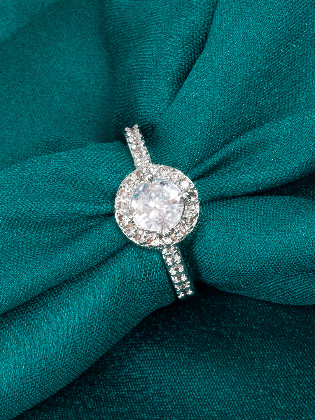 Rhodium Plated Solitaire American Diamond Adjustable Finger Ring