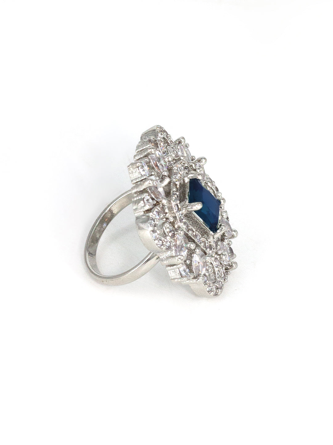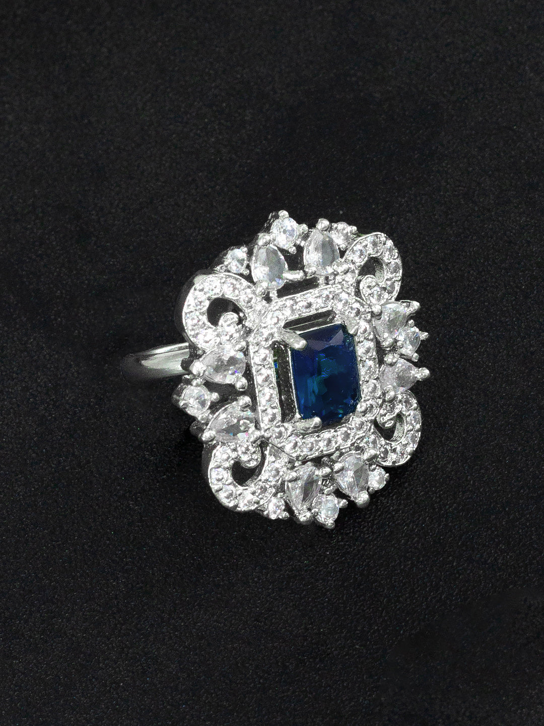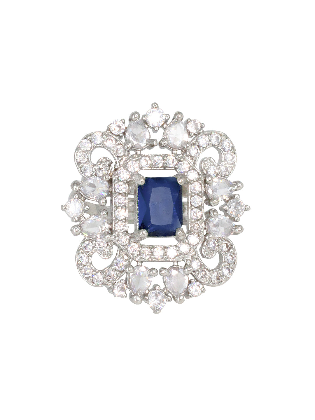 Rhodium Plated Blue American Diamond Vintage Adjustable Finger Ring