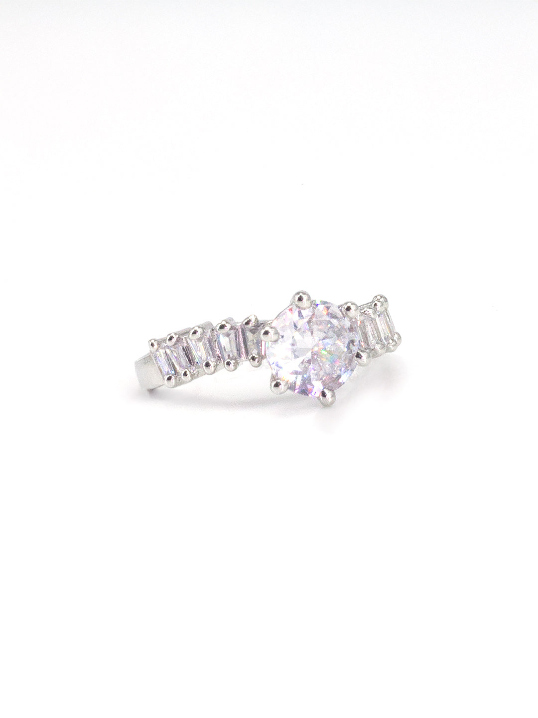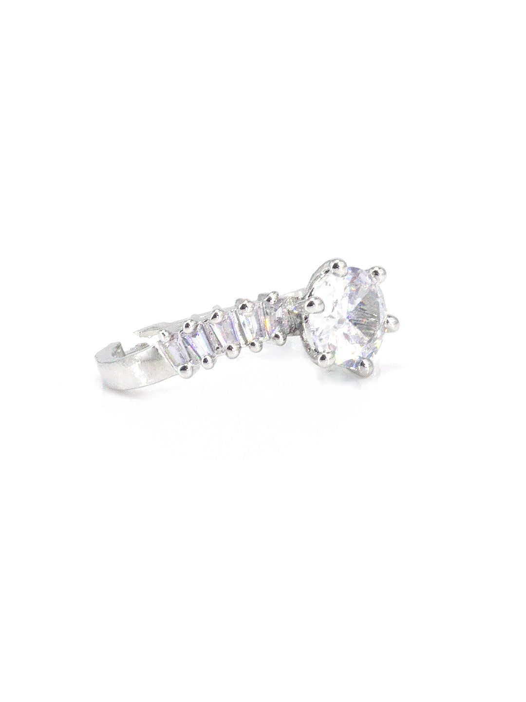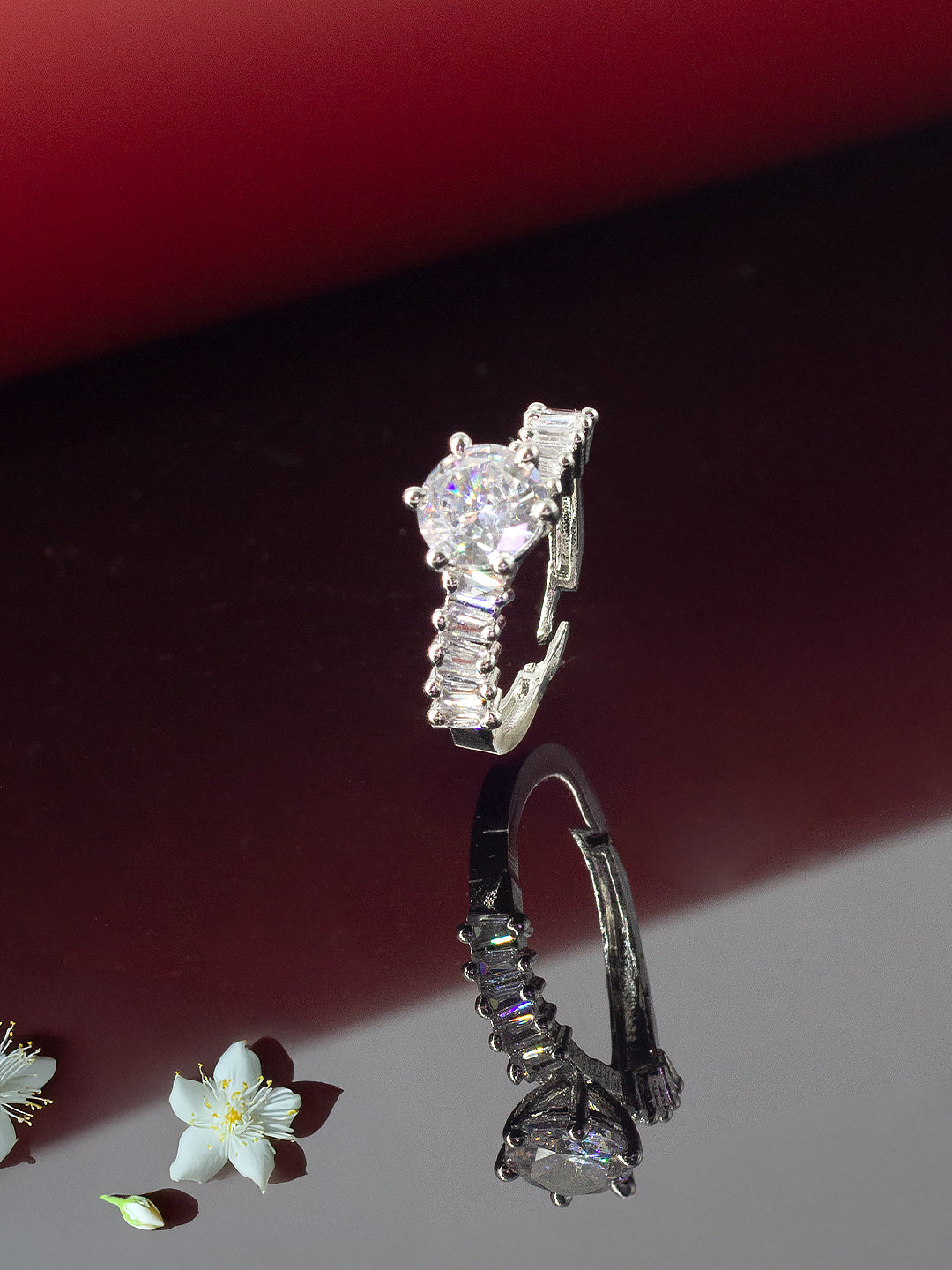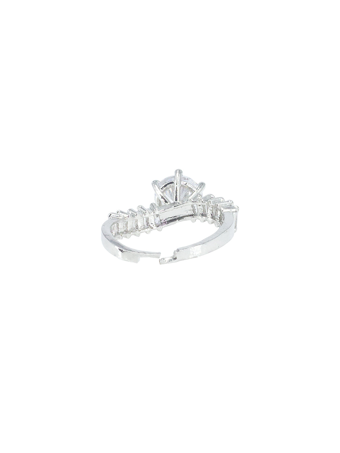 Rhodium Plated Solitaire American Diamond Adjustable Finger Ring