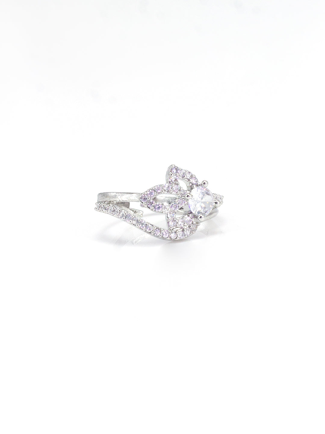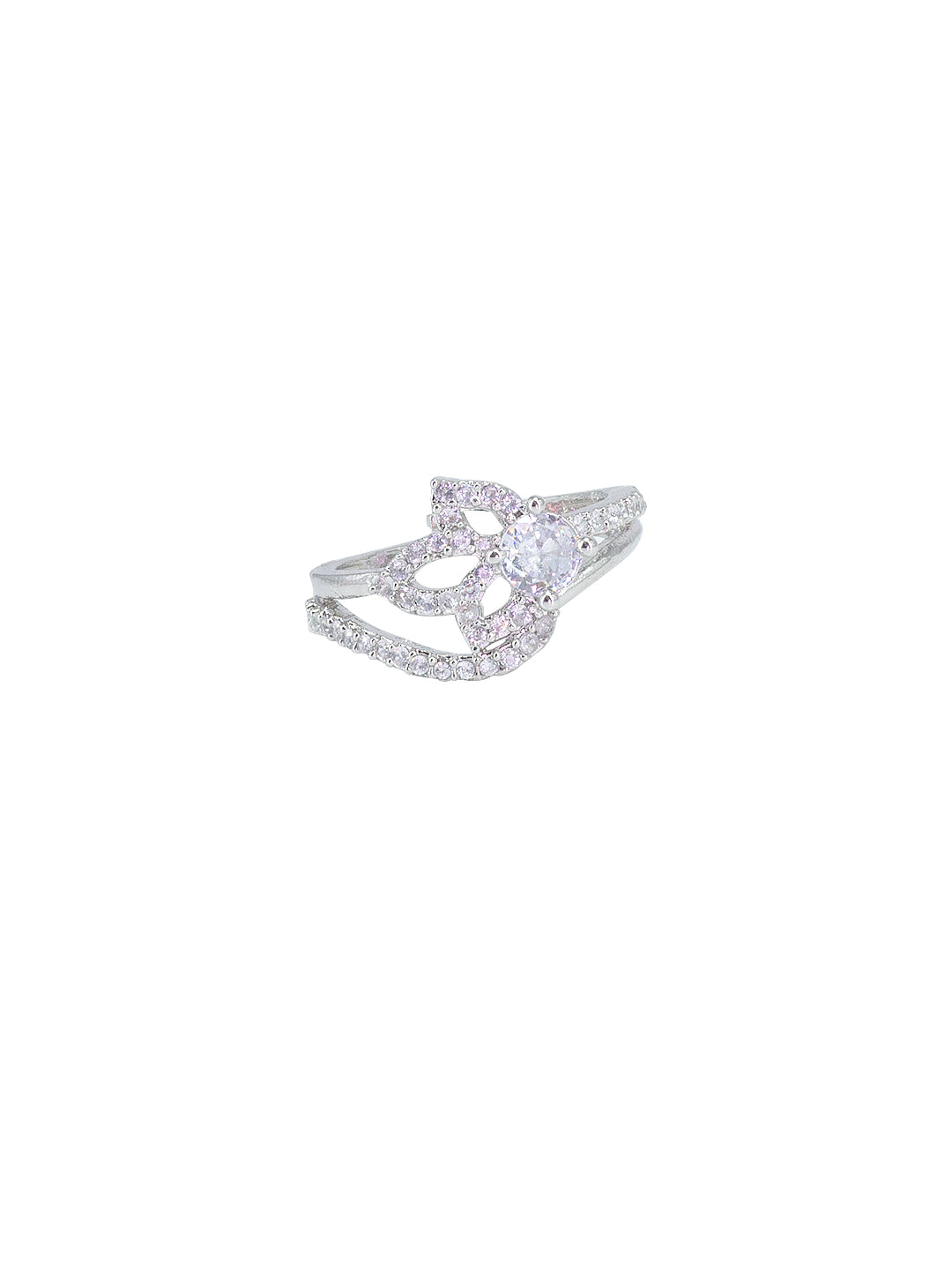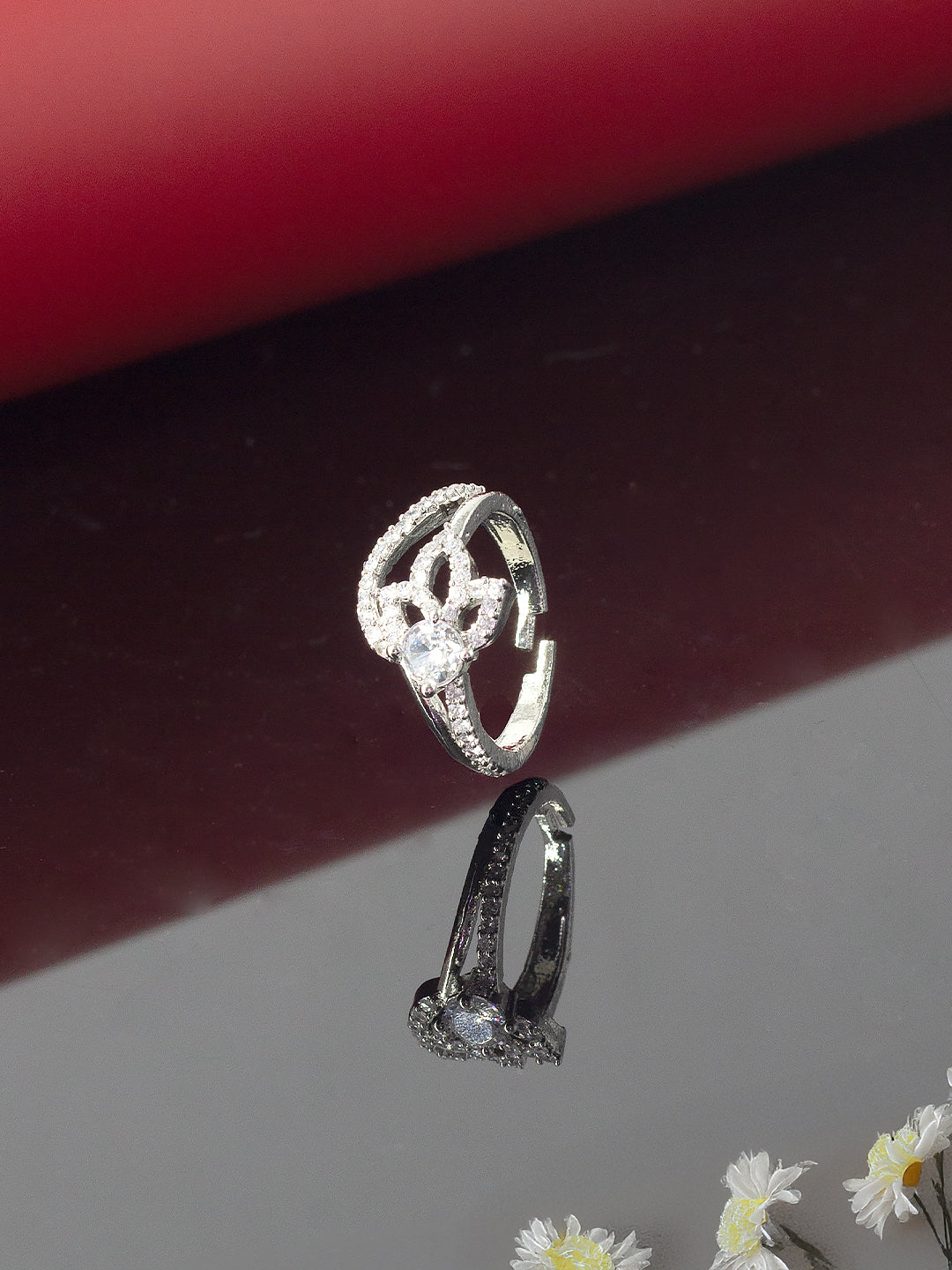 Rhodium Plated Floral American Diamond Adjustable Finger Ring