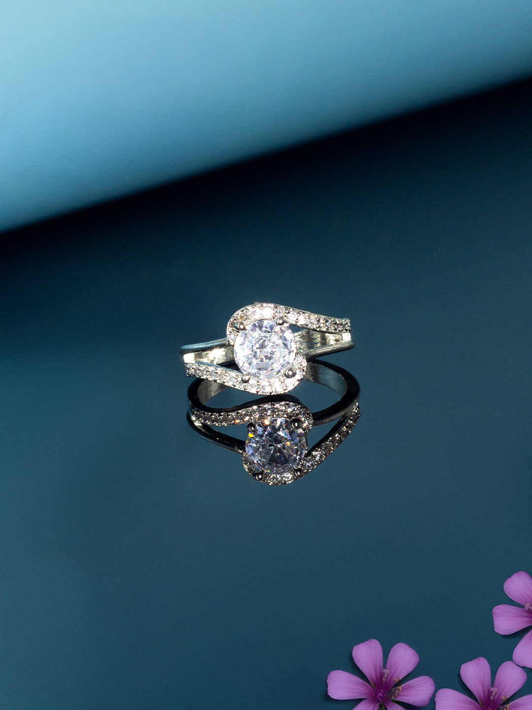 Floral Solitaire AD-Studded Adjustable Ring