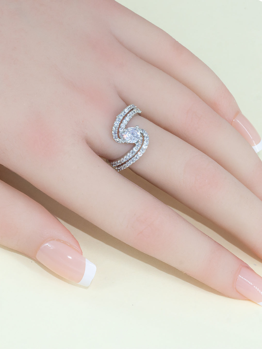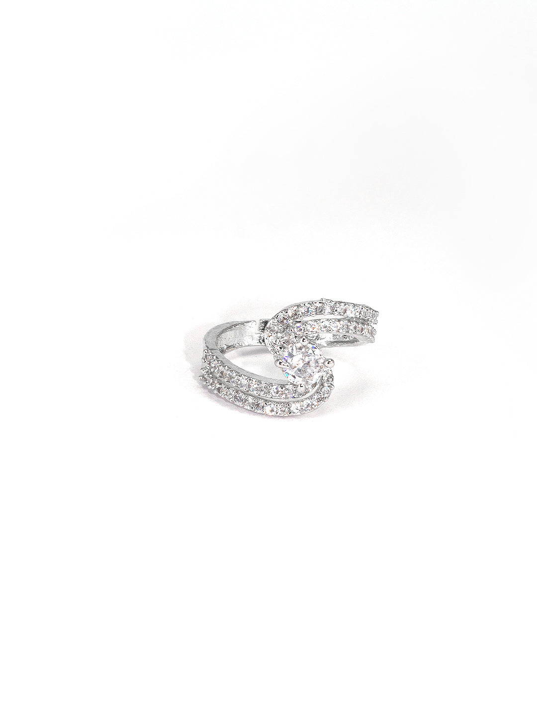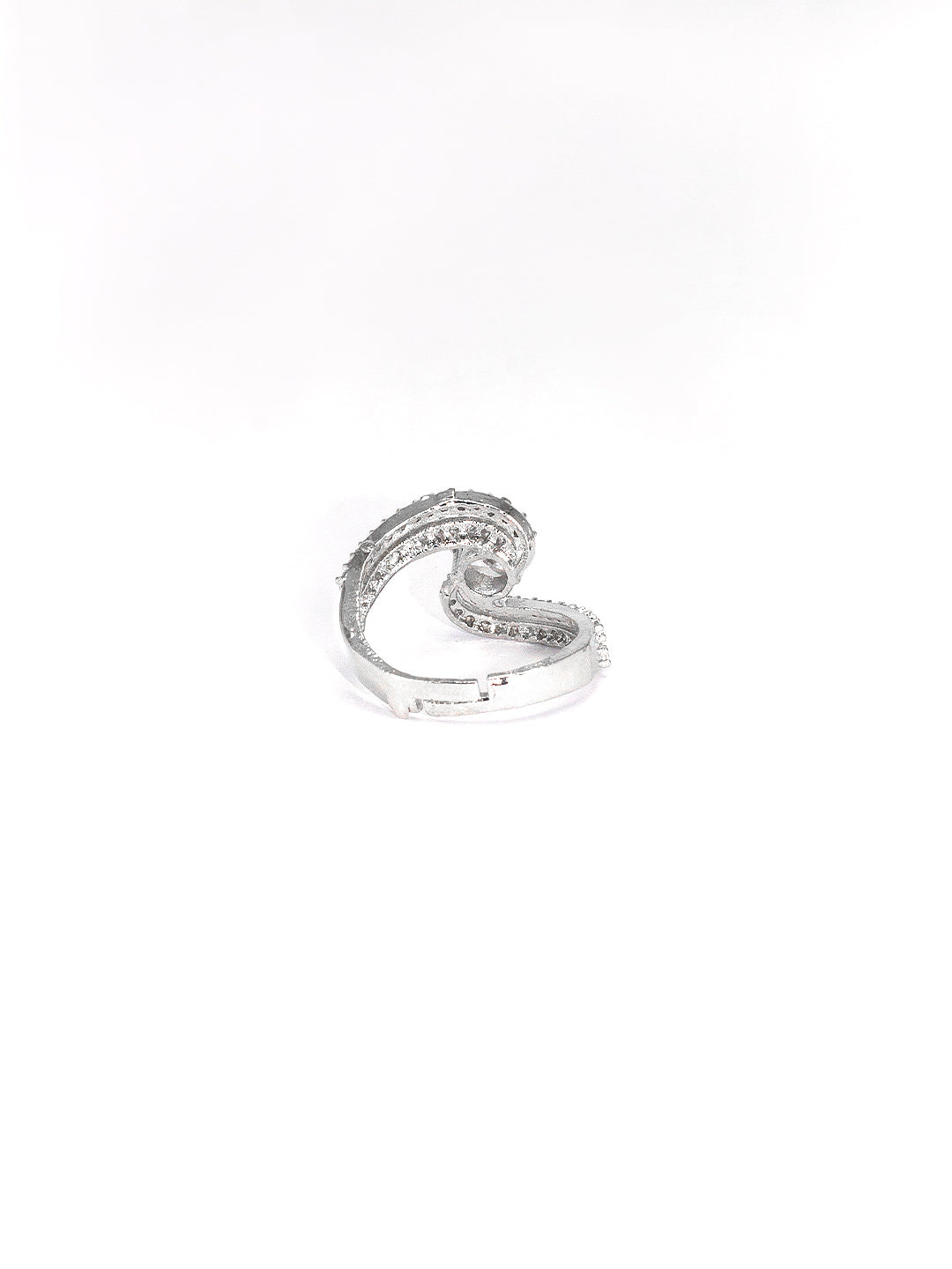 Rhodium Plated American Diamond Adjustable Finger Ring