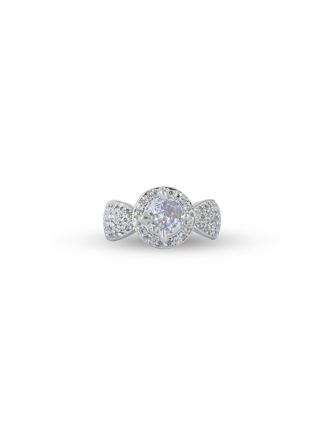 Rhodium Plated Solitaire American Diamond Adjustable Finger Ring