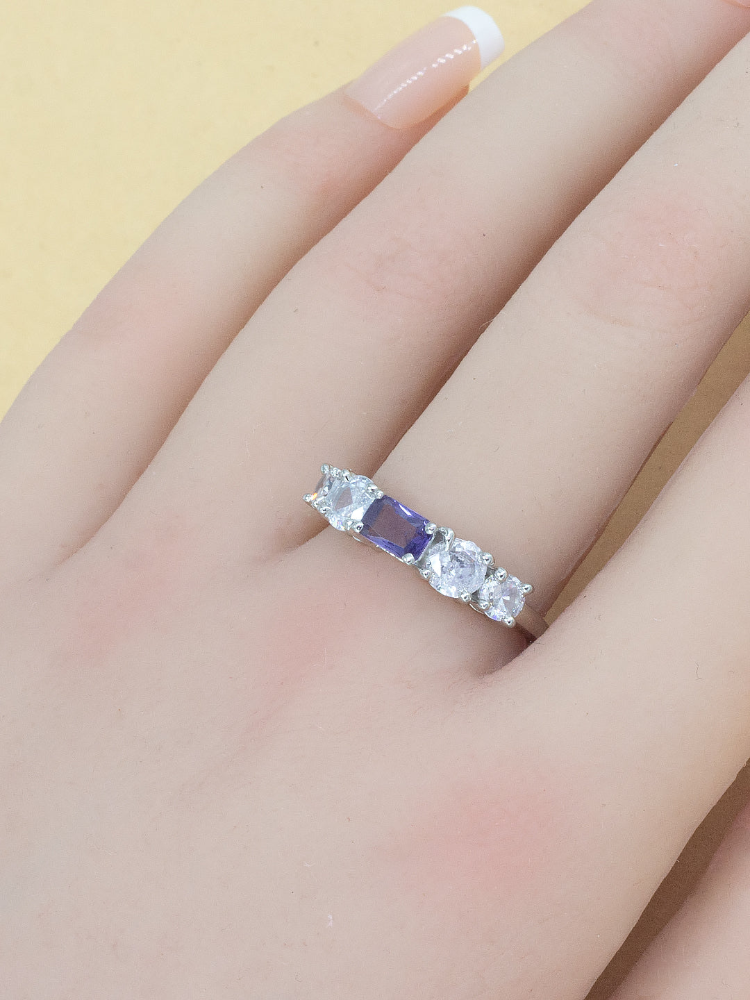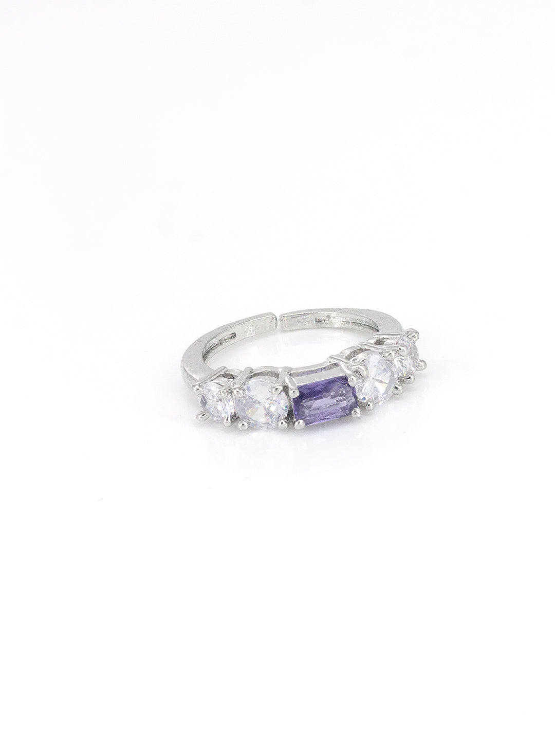 Rhodium Plated Purple American Diamond Adjustable Finger Ring