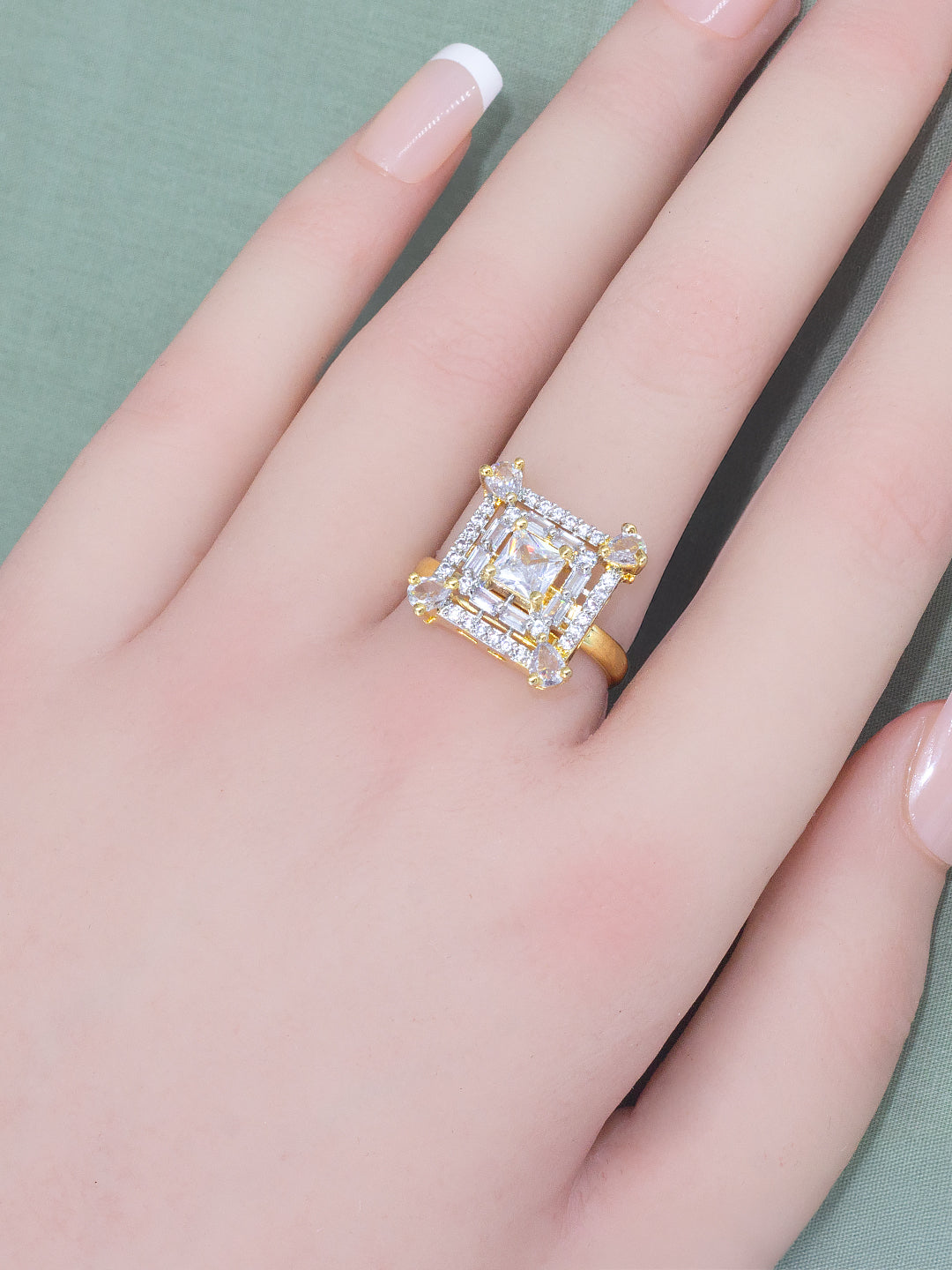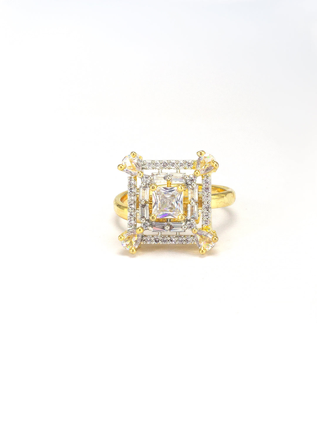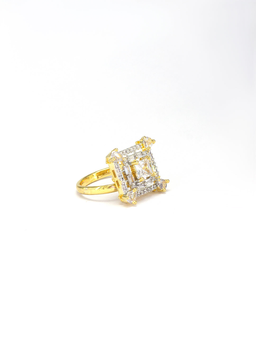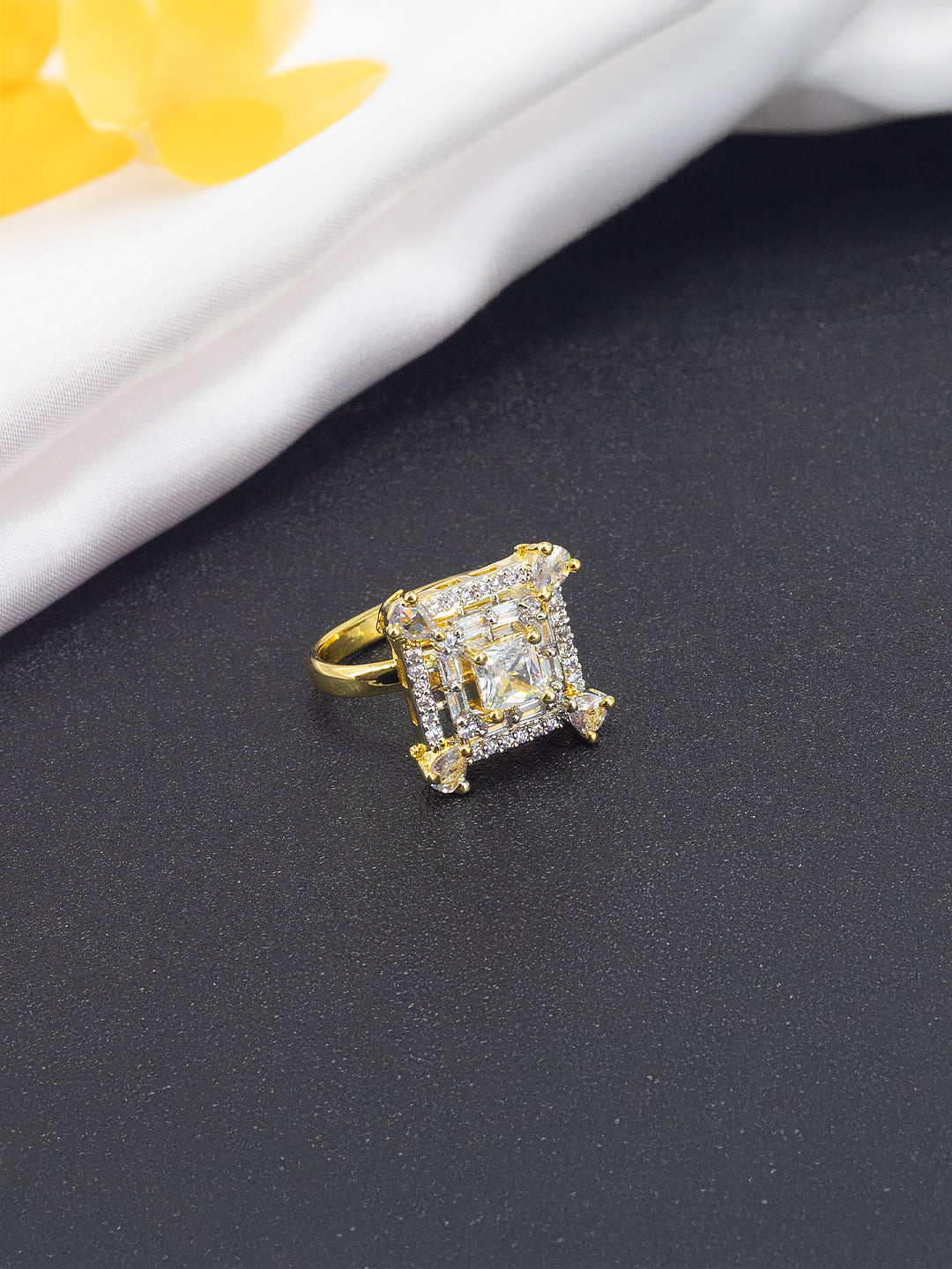 Gold Plated Square American Diamond Adjustable Finger Ring