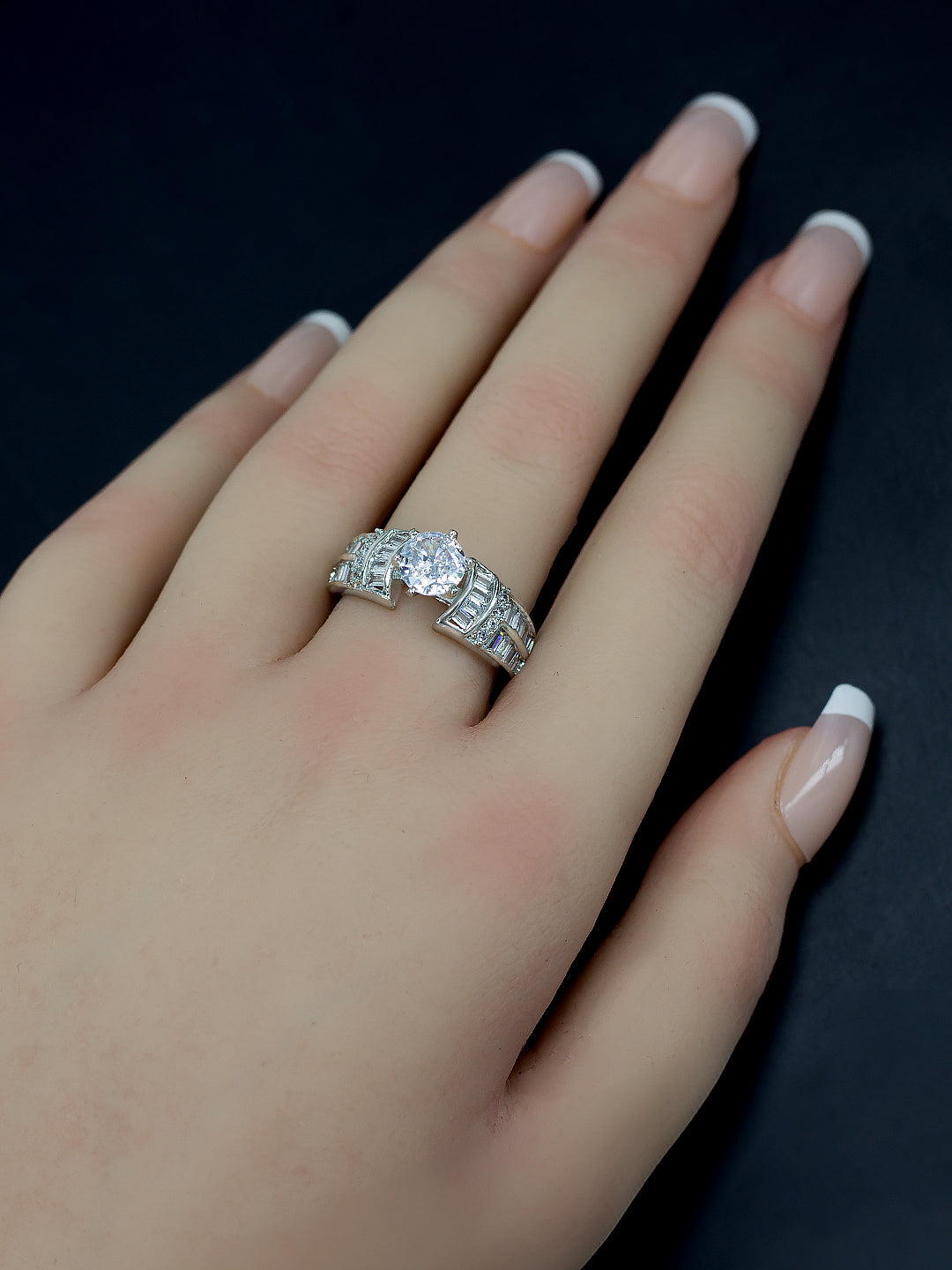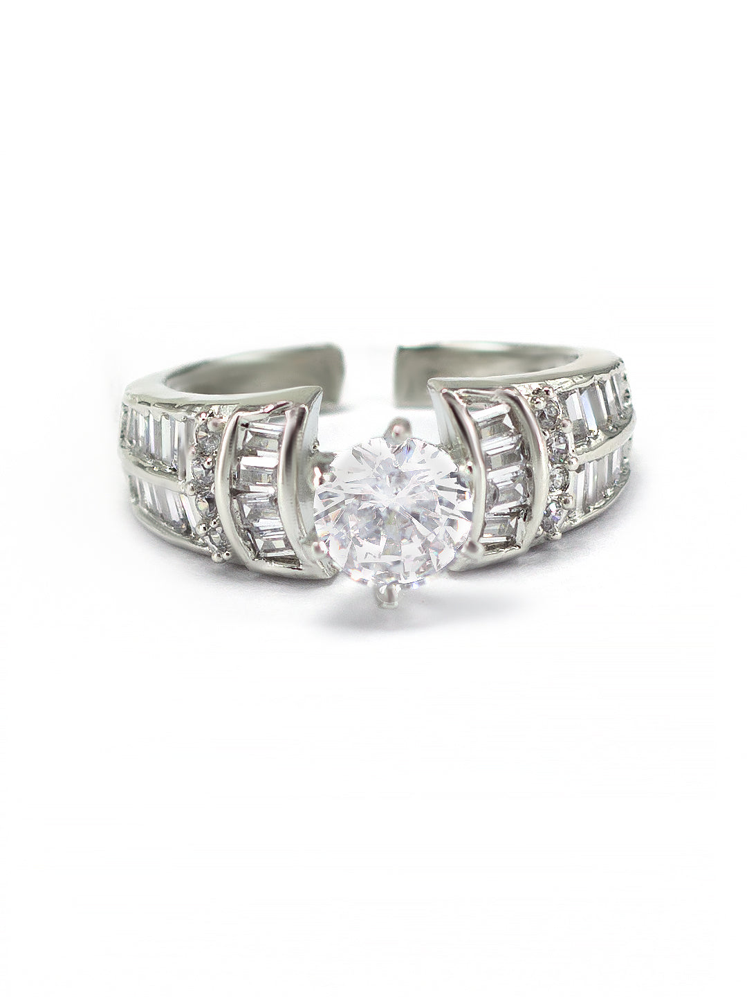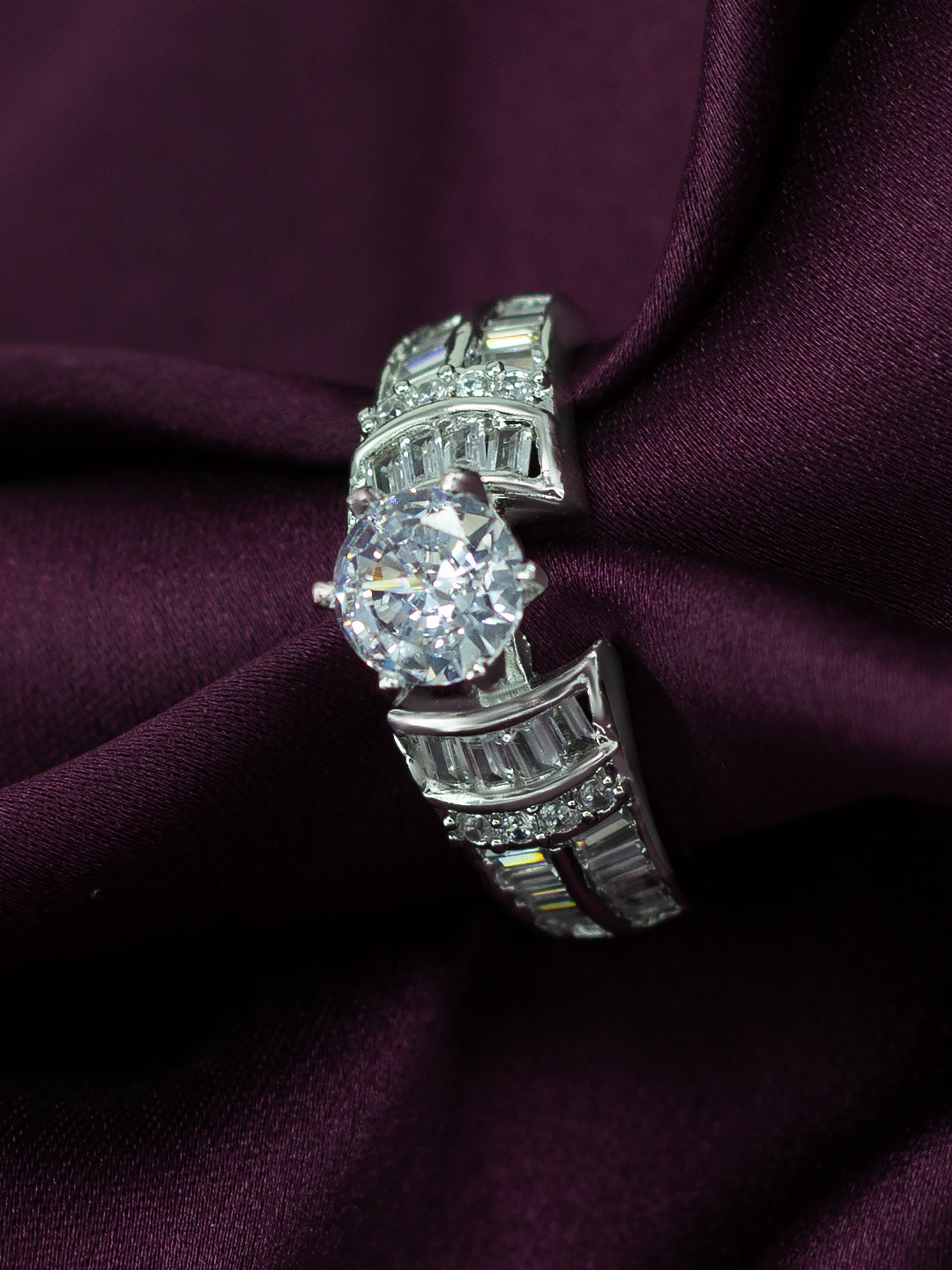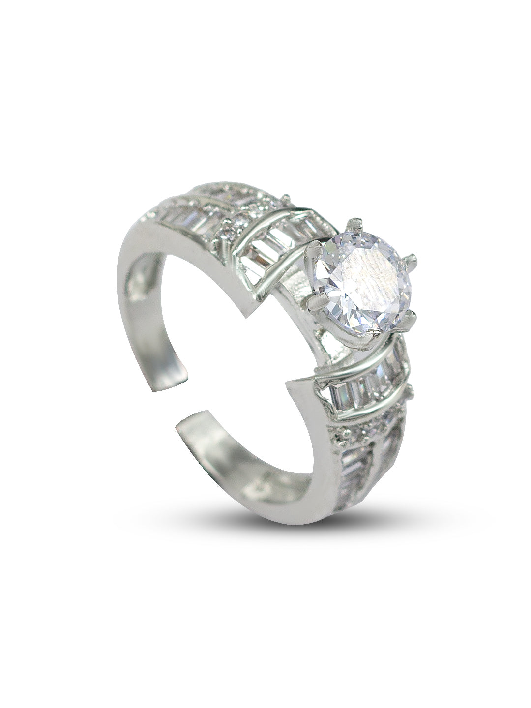 Rhodium Plated Solitaire American Diamond Adjustable Finger Ring