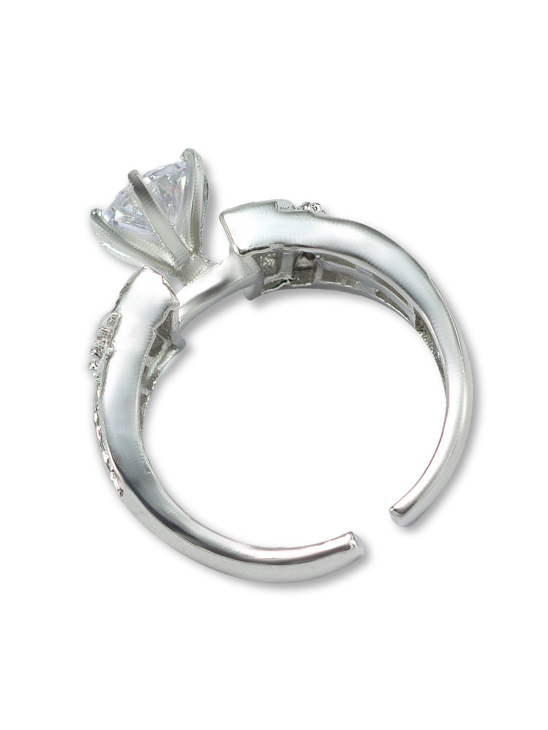 Rhodium Plated American Diamond Adjustable Solitaire Finger Ring