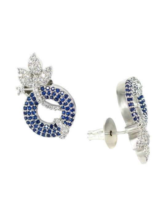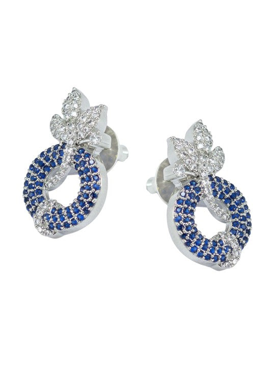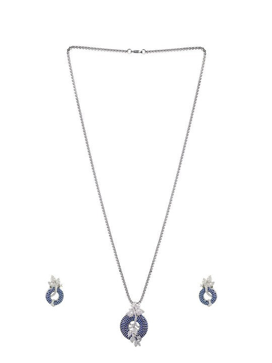 Rhodium-Plated American Diamond Studded Pendent & Earrings Set