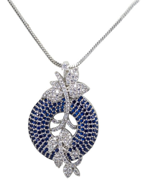 Rhodium Plated Teardrop American Diamond Studded Trendy Pendant Set