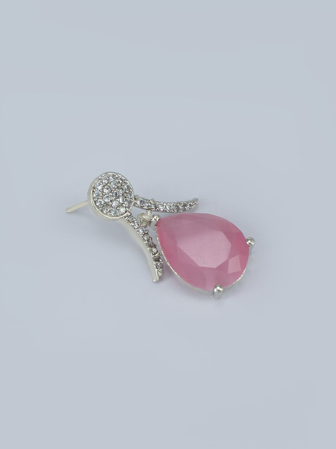 Rhodium Plated American Diamond Studded Teardrop Earrings