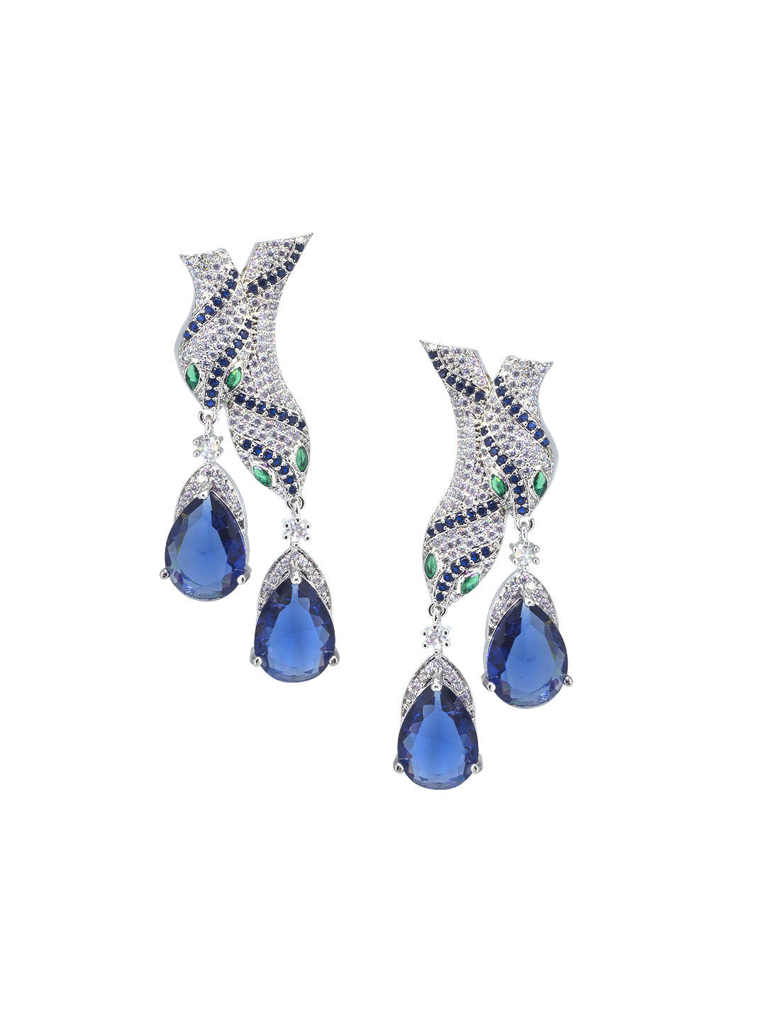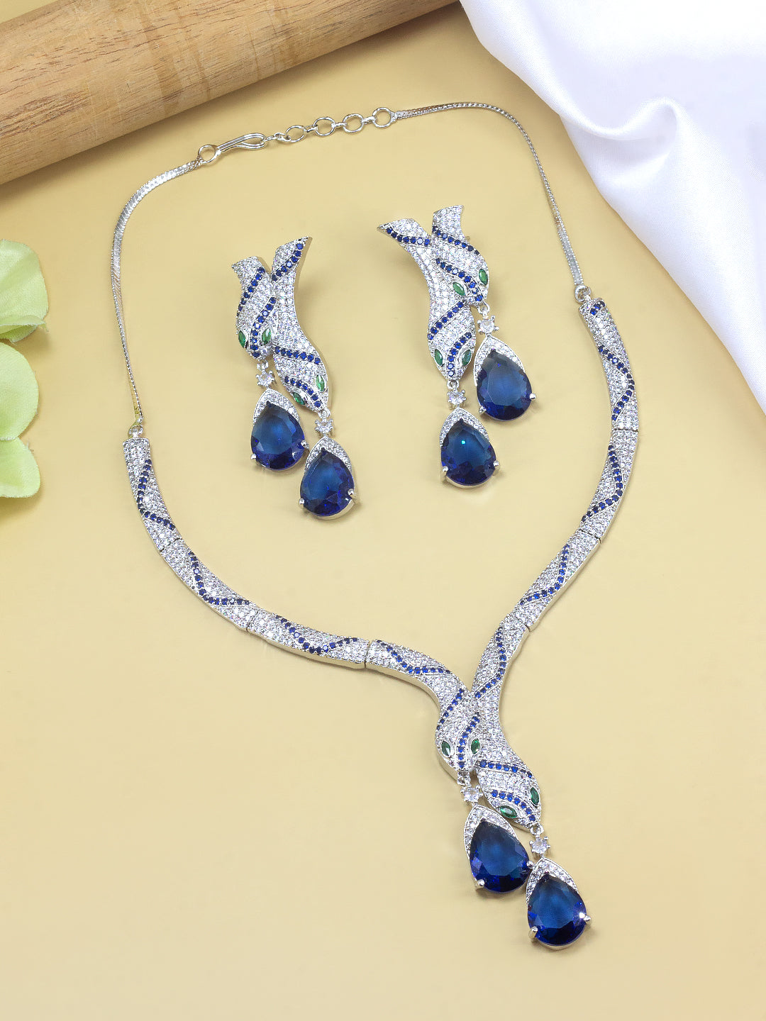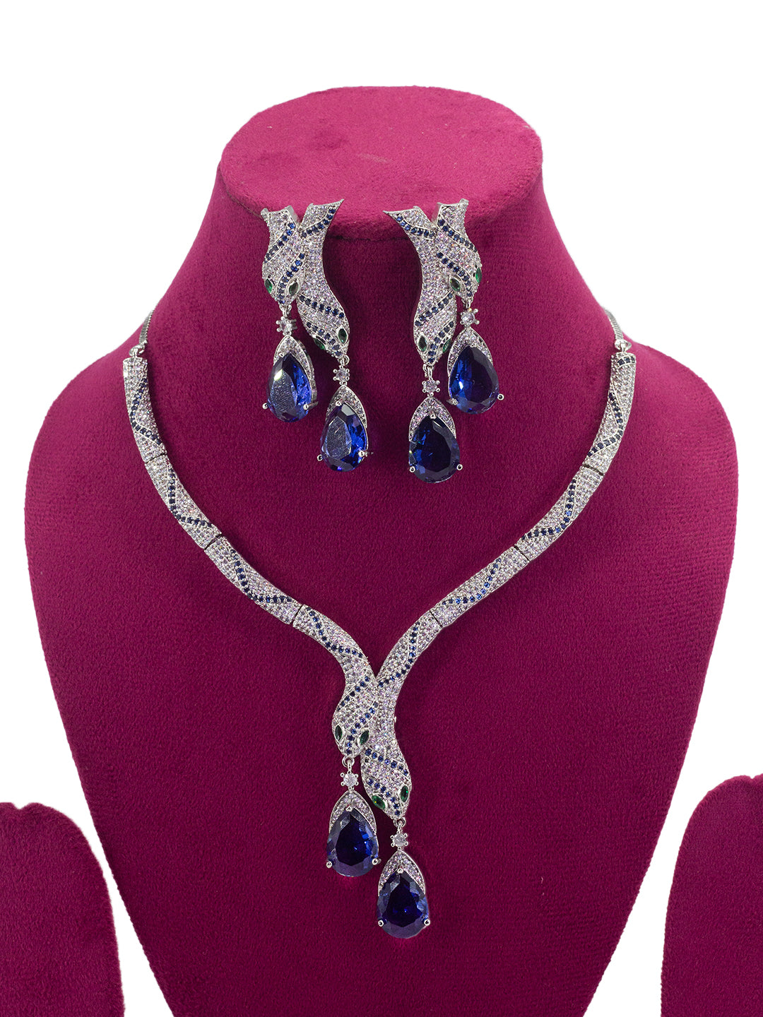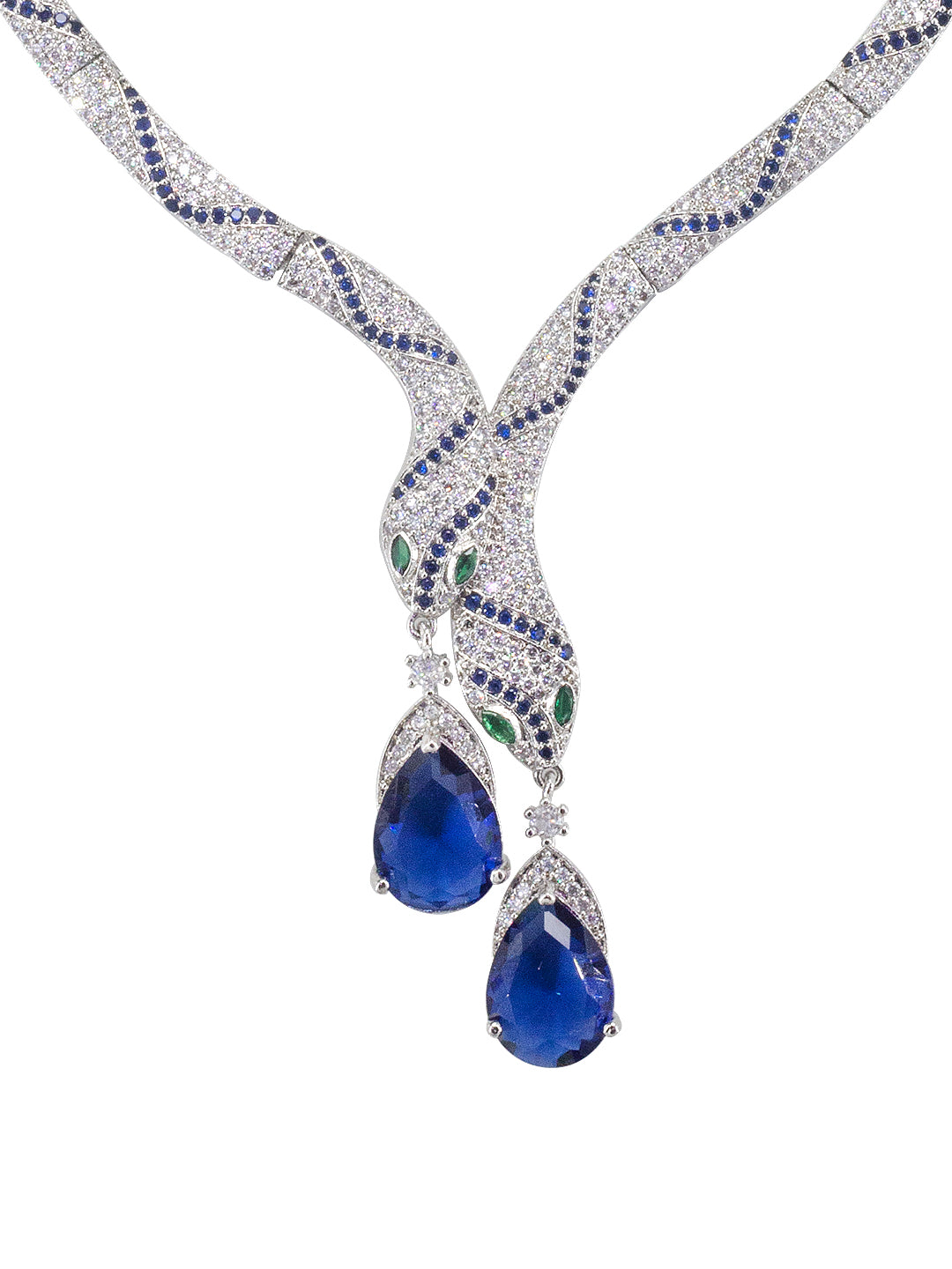 Rhodium Plated Blue Serpent American Diamond Jewellery Set